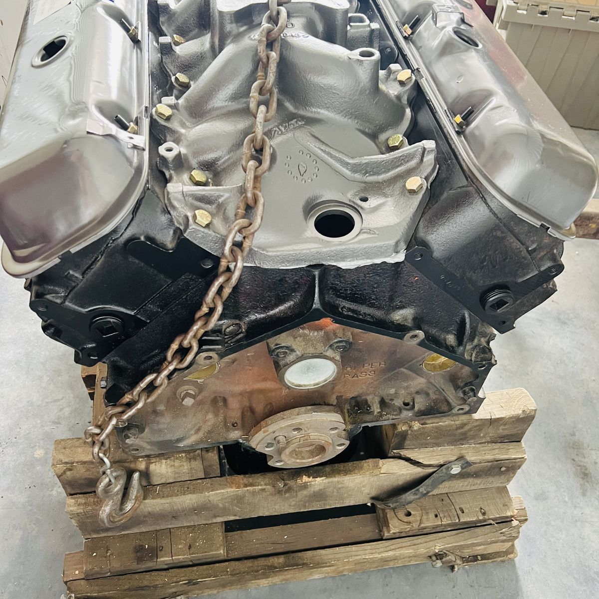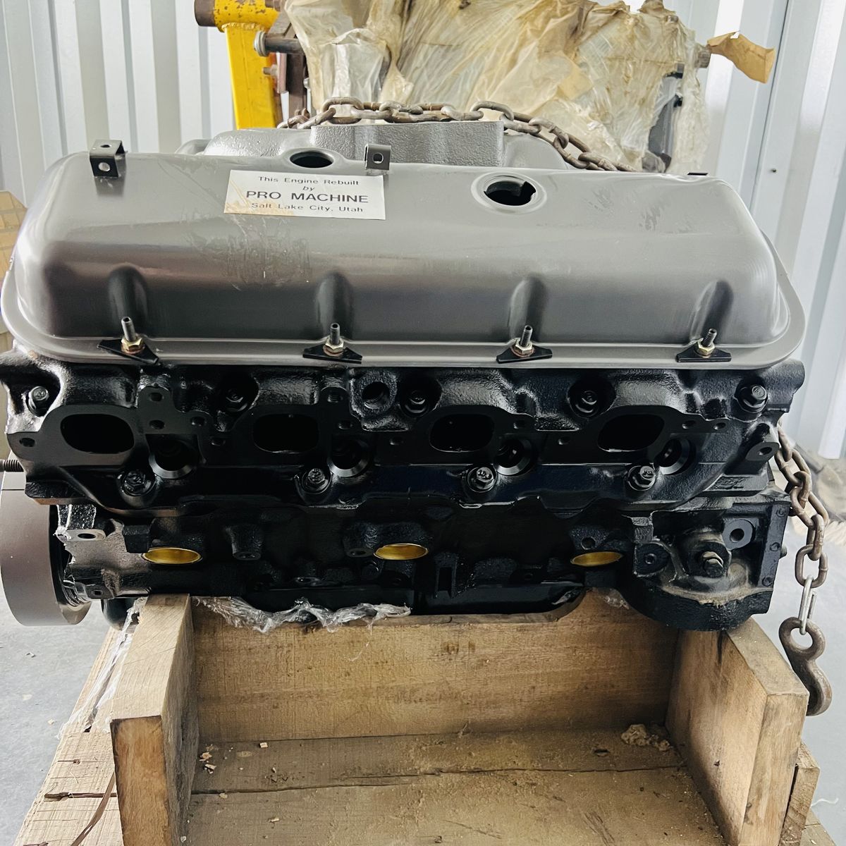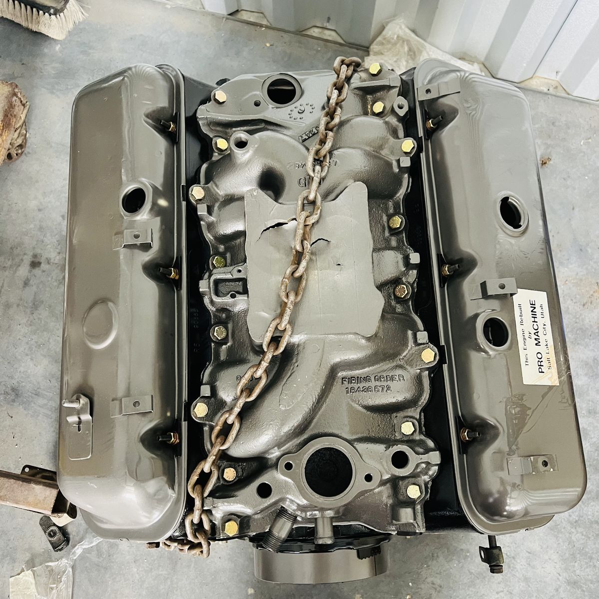 Fully rebuilt by Pro machine This engine has the rare 781 heads and Q-jet intake manifold. We are unsure of what goodies are inside. It's possible that it has an upgraded cam, or upgraded internals, etc. Kept wrapped and well lubricated