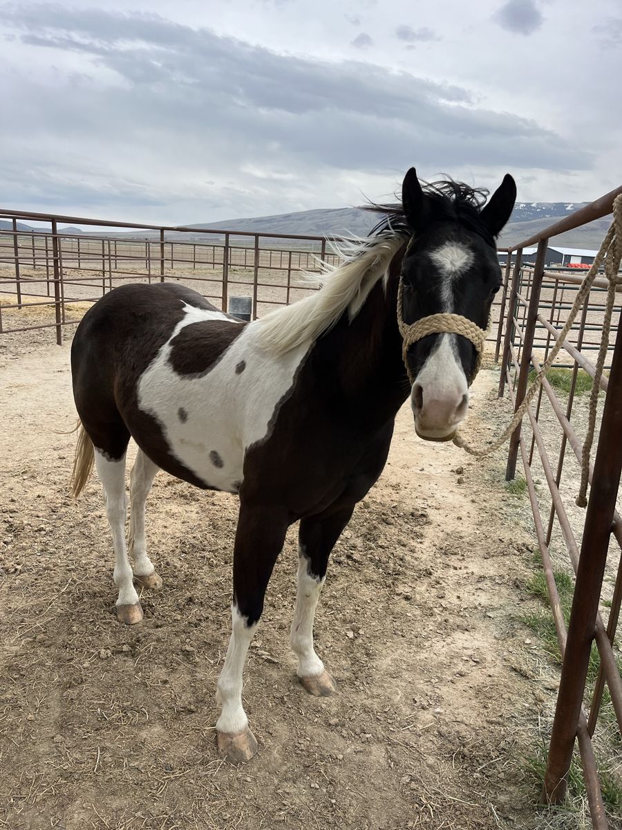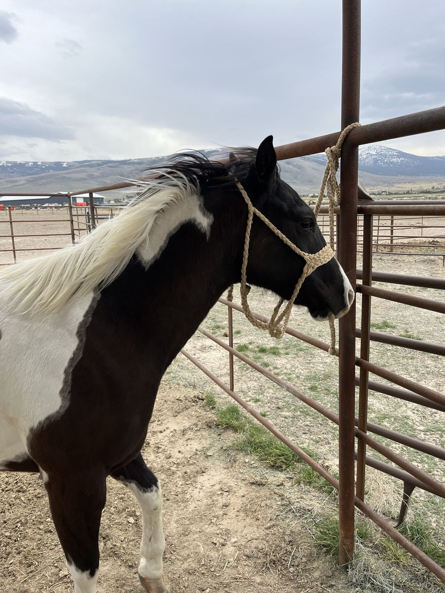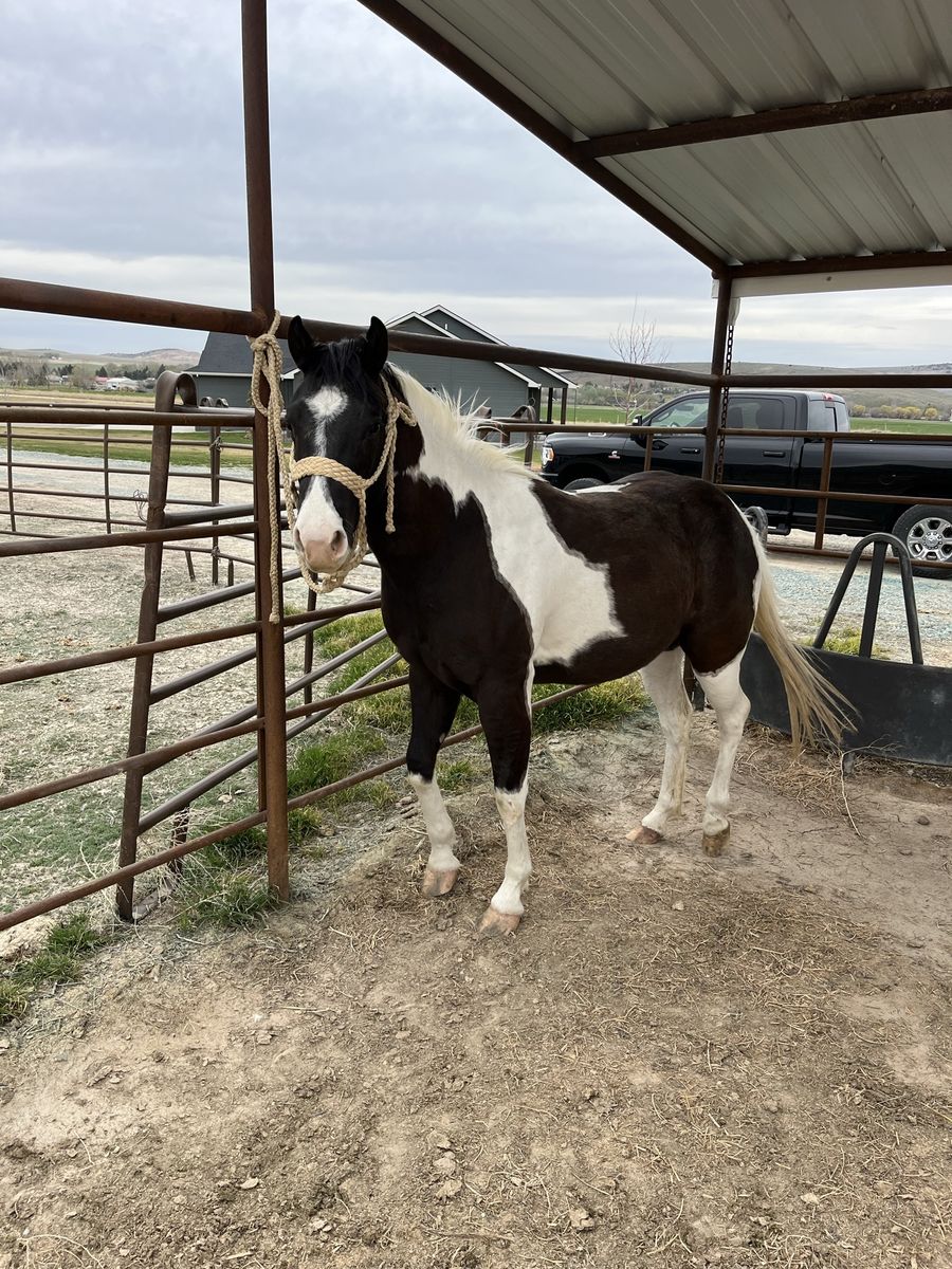 Nabisco is a grade two year old filly. Seems to be very good minded in a cute paint package. We sold a full brother to this filly’s mother for $34,000 last year at Shelmans sale in Oregon as a five year old. Has big round pretty feet. Just got her in today from being turned out all winter haltered her, loaded, and tied up just like I left her from last fall. Ready to start under saddle your way. Call with and questions. Thanks-