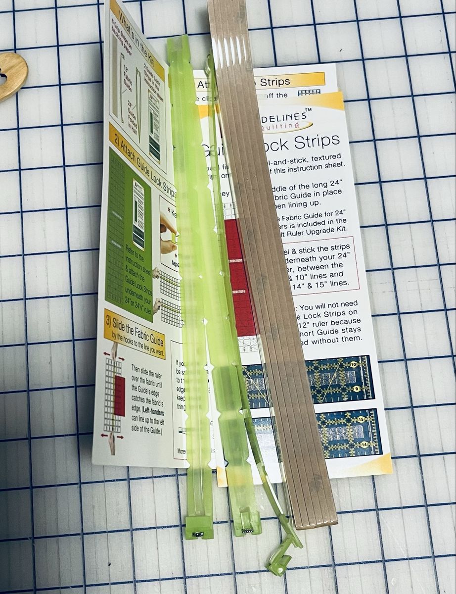 Works on any standard 1/8″ thick acrylic rulers that are 12″ long (or 12½”) and 24″ (or 24½”) long. No More Slipping – No More Lining Up By Eye! The Upgrade Kit includes:\