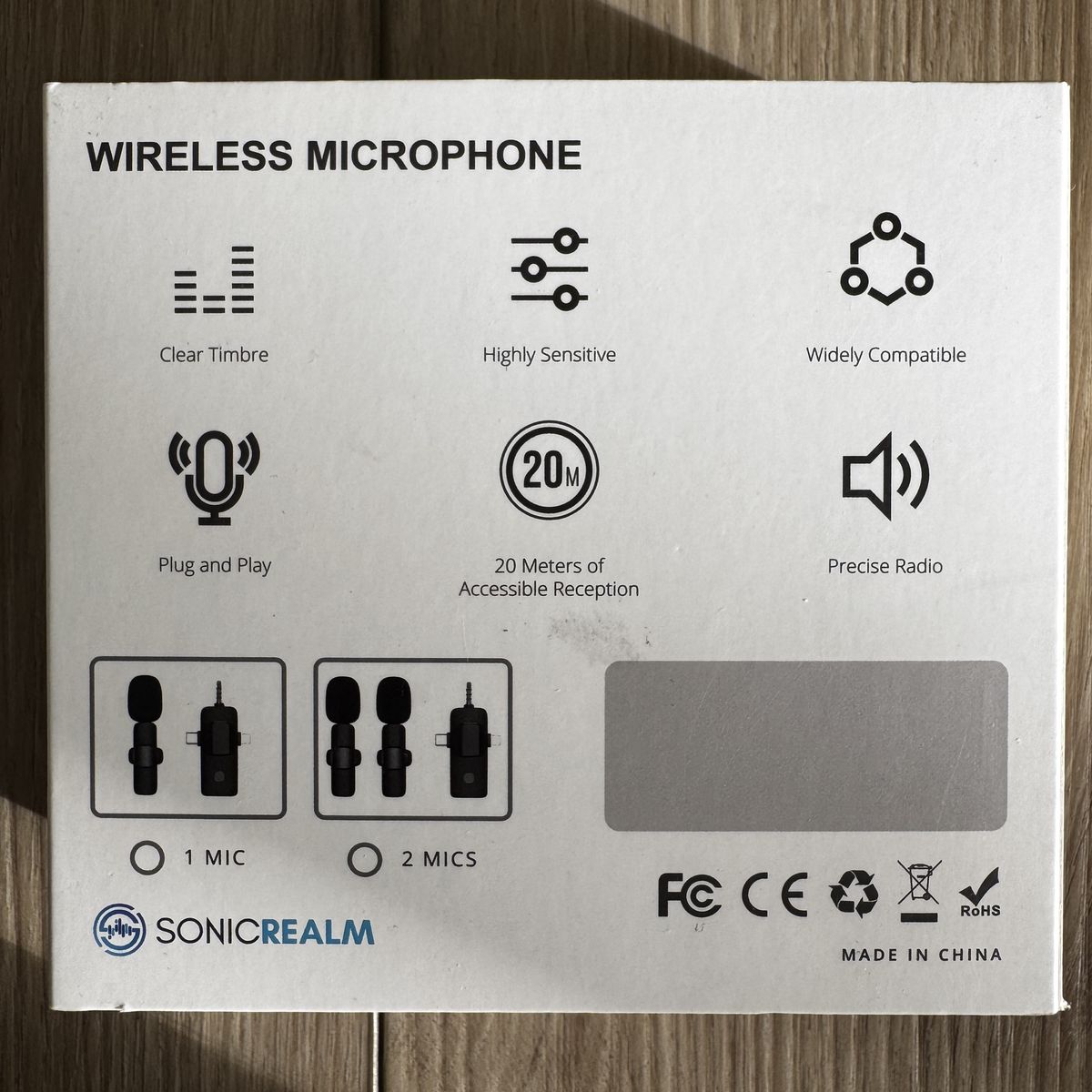 Used just once for a single project and no longer needed — this wireless lapel mic system is essentially brand new and ready for your next video shoot, interview, or live stream. Features ∙ True 3-in-1 connectivity — works seamlessly with smartphones, cameras, and computers ∙ Advanced noise reduction for crisp, clear audio even in noisy environments ∙ Compact clip-on design — lightweight and discreet, easy to wear on the go ∙ Plug-and-play setup — no complicated pairing or software required ∙ Dual wireless mics included for two-person interviews or backup use What’s Included ∙ 2x Sonic Realm wireless lapel microphones ∙ Receiver dongle ∙ Charging cable(s) ∙ Original packaging Condition ∙ Like New — used once for a single project ∙ No issues — works perfectly ∙ All original accessories present Price $5. Retails for $10 new — grab a fully functional wireless mic system for half the cost. Pickup & Payment ∙ Pickup: Kaysville, Utah ∙ Payment: Cash, Venmo, Cash App, Apple Pay Message me if interested!