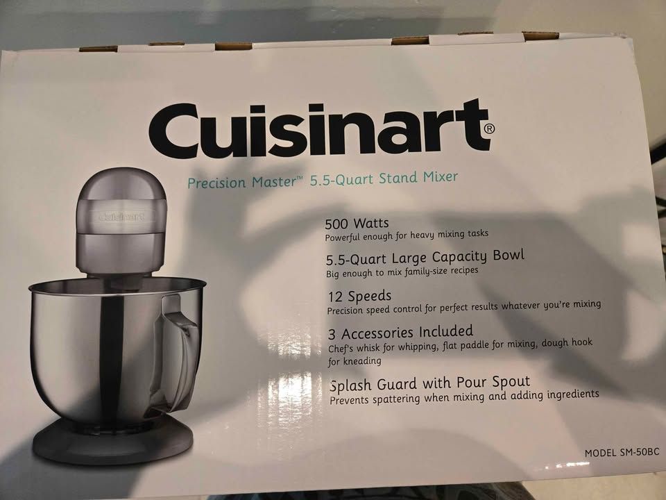 VenmoBrand new, never used Cuisinart Precision Master 5.5-Quart Stand Mixer (Model SM-50BC).