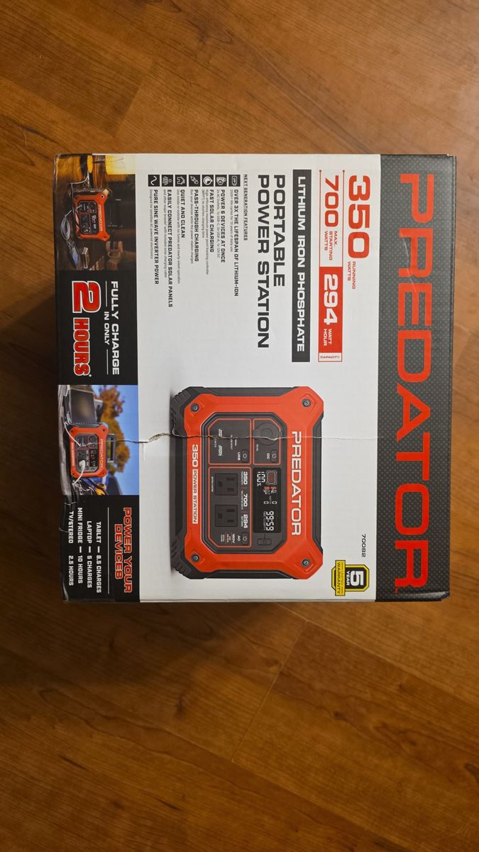 The PREDATOR™ 350 Watt Power Station, 294 Wh Capacity fully charges up to 6 devices at once and fully recharges in only 2 hours using AC and USB-C*** charging inputs. This power station is made with a reliable 294.4 Wh lithium iron phosphate battery that delivers over 3500 charge cycles for 10 years of daily use. An integrated digital display makes it easy to monitor runtimes, power input, and more. Use this convenient power station to charge tablets, laptops, satellite modems, mini fridges, CPAPs, TVs, or Bluetooth® speakers.