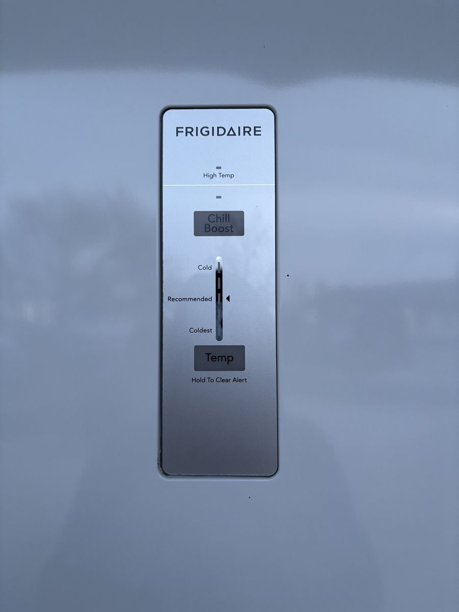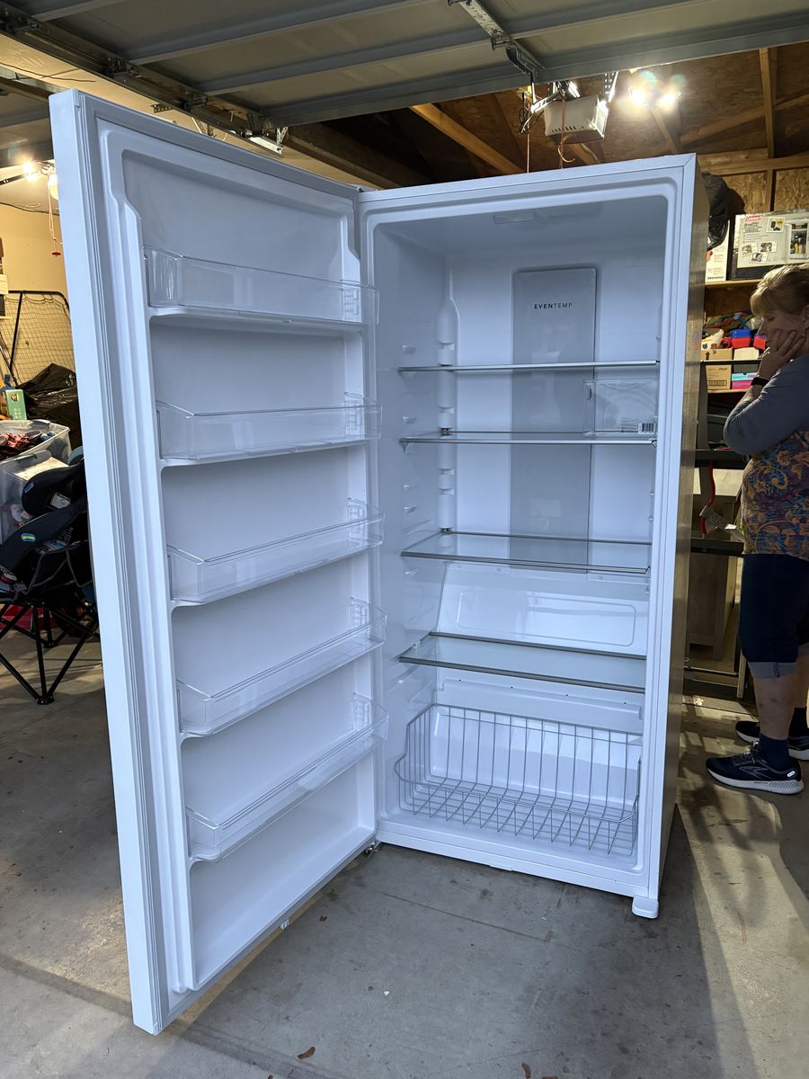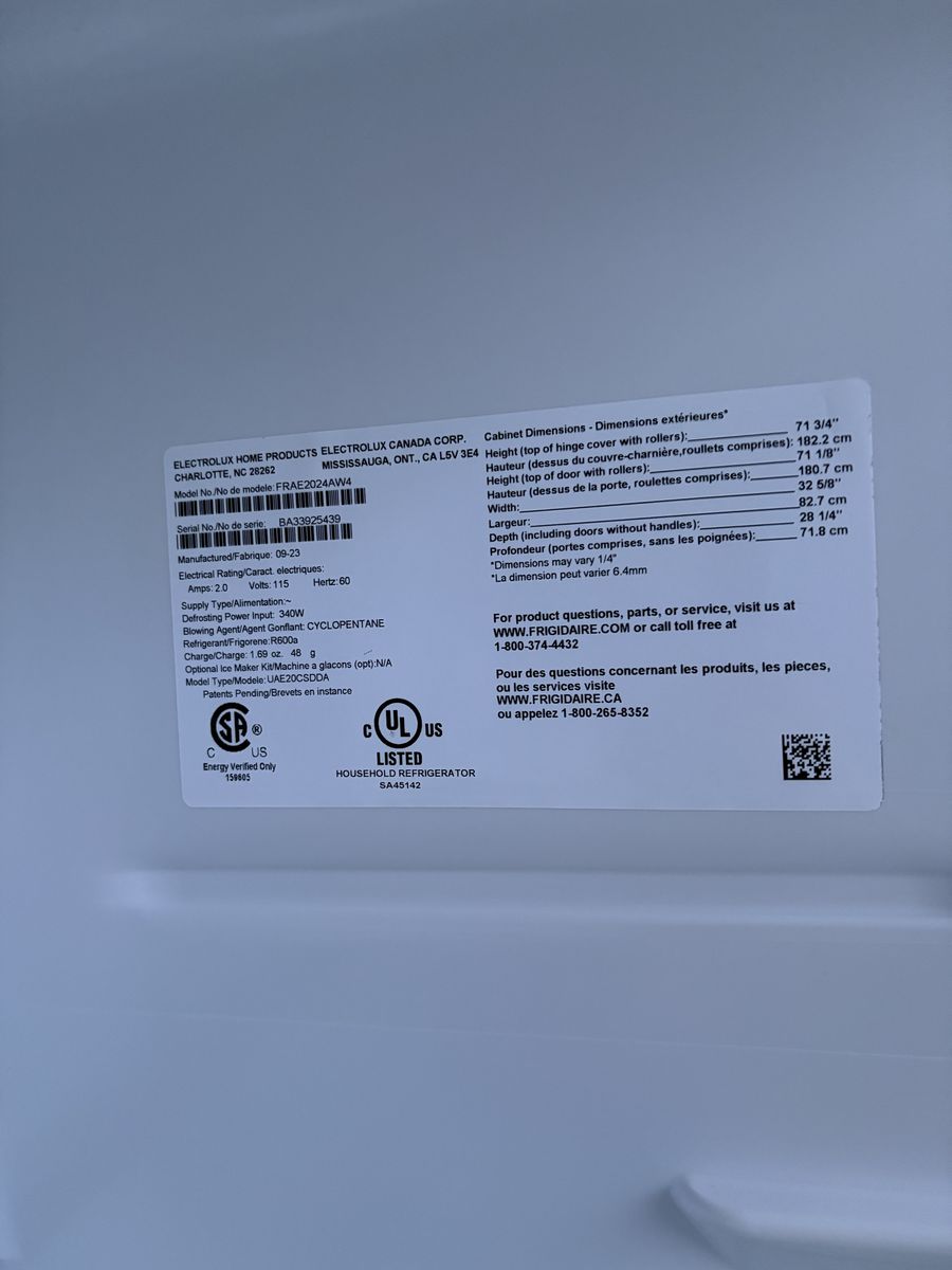 ApplePayClean Frigidaire upright fridge. This FRAE2024 is super clean inside and out. Has digital temp control with a 'Chilli Boost' option and a sleek stainless steel handle. Plenty of storage with adjustable shelves and door bins. Dimensions are 71 3/4" high, 32 5/8" wide, 28 1/4" deep.
