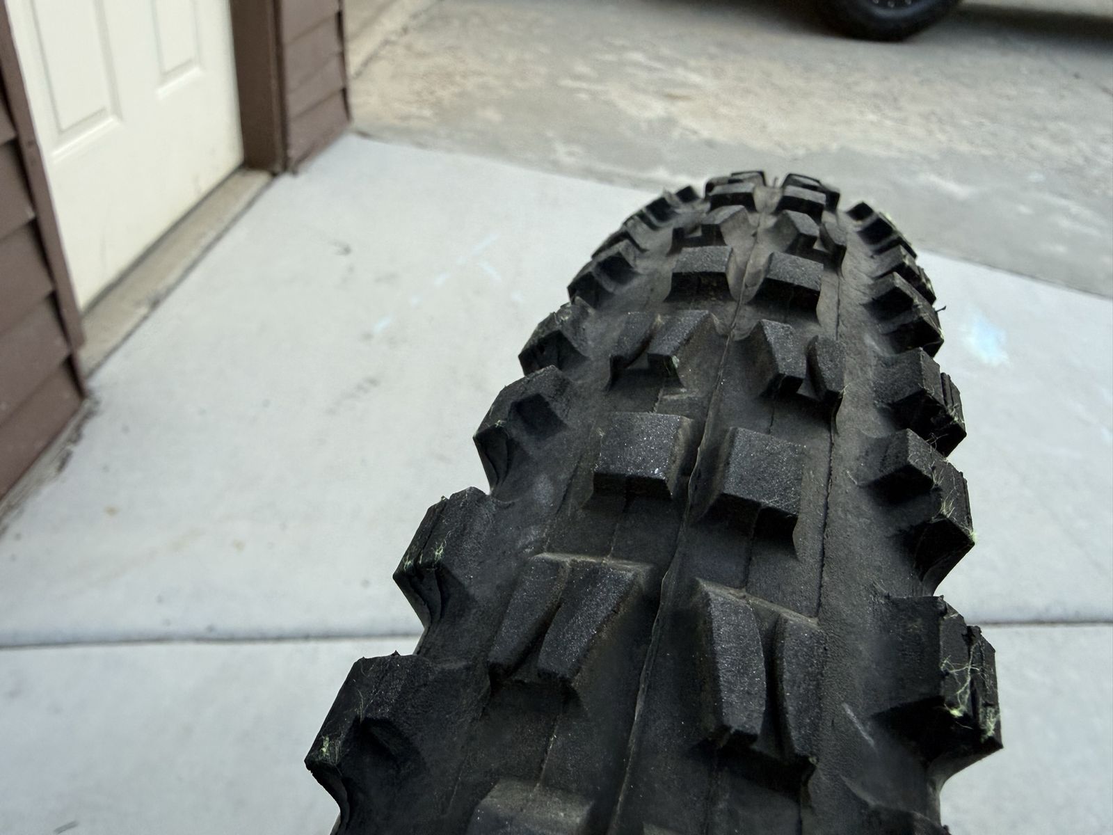 About a season ago the bike was fully stripped, cleaned and all all bearings greased (including frame pivots), and is good to go and running smooth. There is a small dent in the rear rim that necessitates running tubes, rear wheel not running fully true at the moment but a shop or someone with a truing stand should be able to resolve.