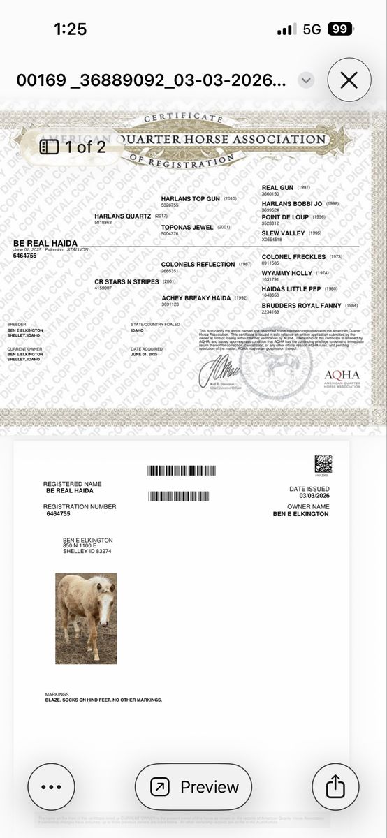 Yearling colts AQHA registered. Cow and working bred. $ 3500 obo. 208 313 0650