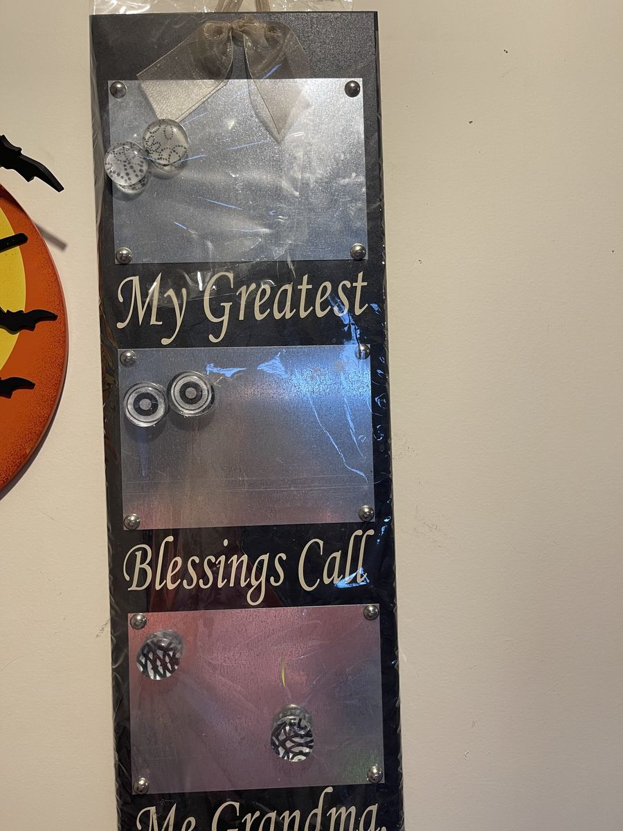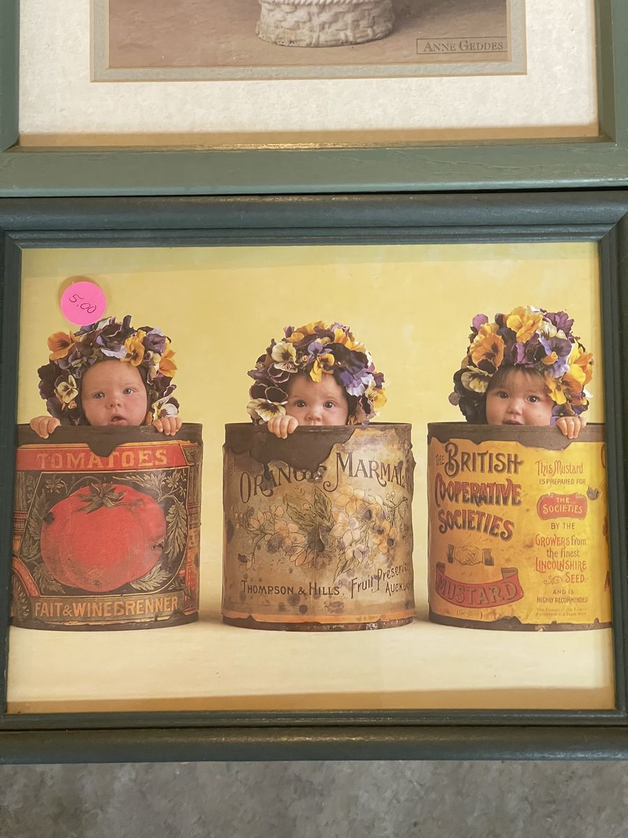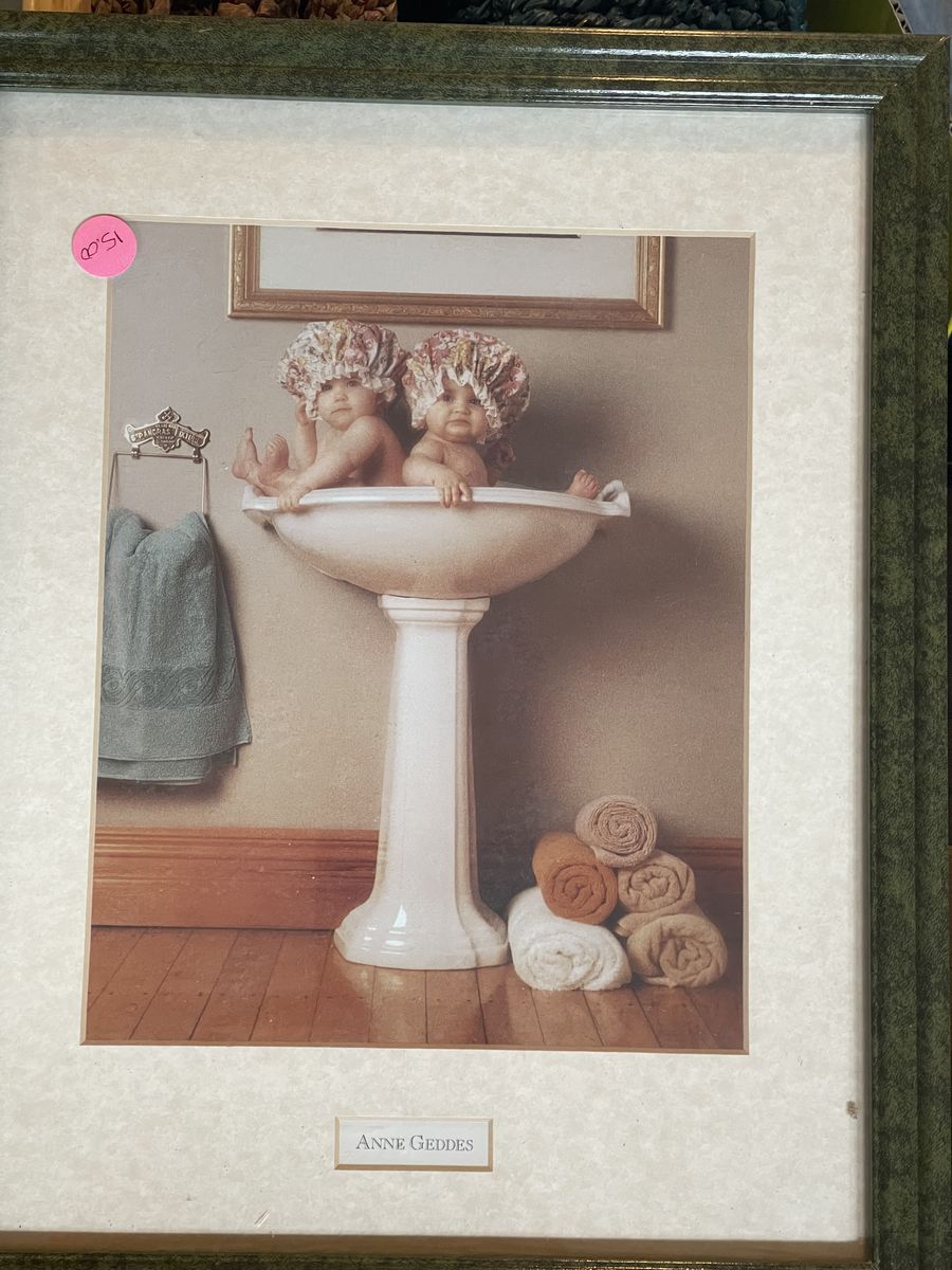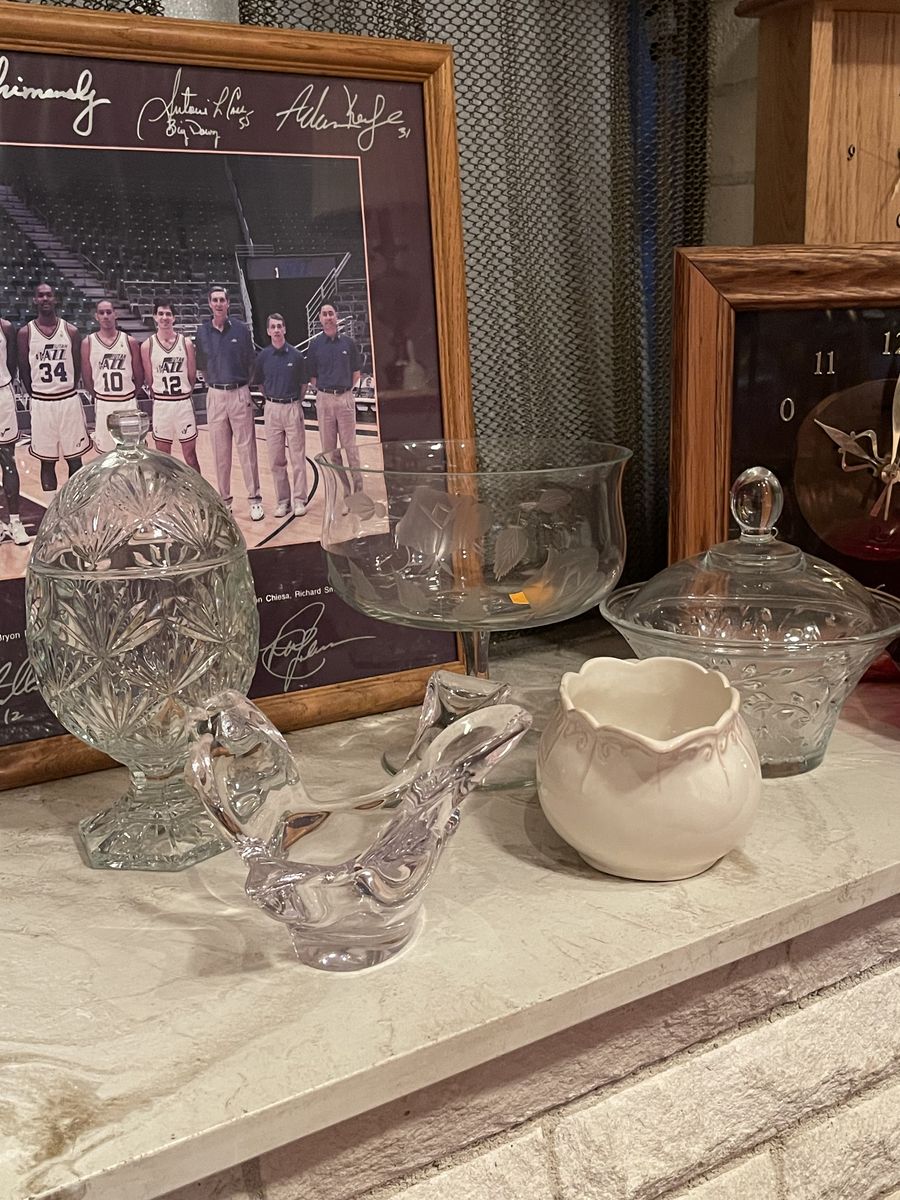 I have various items here for sale. The sea shell picture is an excellent shape it 21 1/2 x 33 1/2 $20 The Oak Westminster clock chimes on the hour it works with batteries. It’s about 18 inches tall. $30 Large, brown metal decorative peace is 24” in diameter. $15 Watham oval quartz clock is 11 1/2” x 9 1/2” $5 Anne Getty‘s baby pictures 8 x 11 $5 and the larger one is $9 My greatest blessings, magnetic picture holder is new still has the plastic on it $15 Small ceramic picture with the pink trim $5 Glass decorative dish with lid $8 Solid glass, decorative bird dish $8