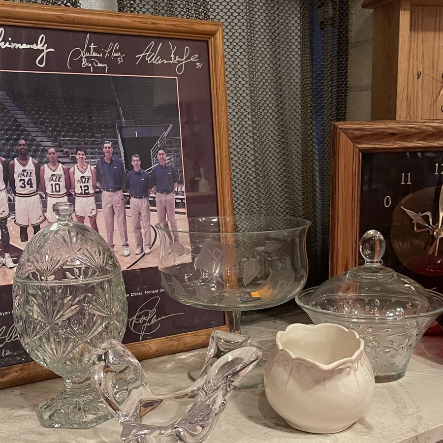 I have various items here for sale. The sea shell picture is an excellent shape it 21 1/2 x 33 1/2 $20 Large, brown metal decorative peace is 24” in diameter. $15 Anne Getty‘s baby pictures 8 x 11 $5 and the larger one is $9 My greatest blessings, magnetic picture holder is new still has the plastic on it $15 Small ceramic picture with the pink trim $5 Glass decorative dish with lid $8 Solid glass, decorative bird dish $8 Crystals, stemmed, dessert dish with tulip design $13 Glass egg with lid $10 I WILL NOT RESPOND TO IS THIS STILL AVAILABLE. IF IT’S ON THE SITE, IT’S STILL AVAILABLE. Thanks for looking. VENMO A HOLD.