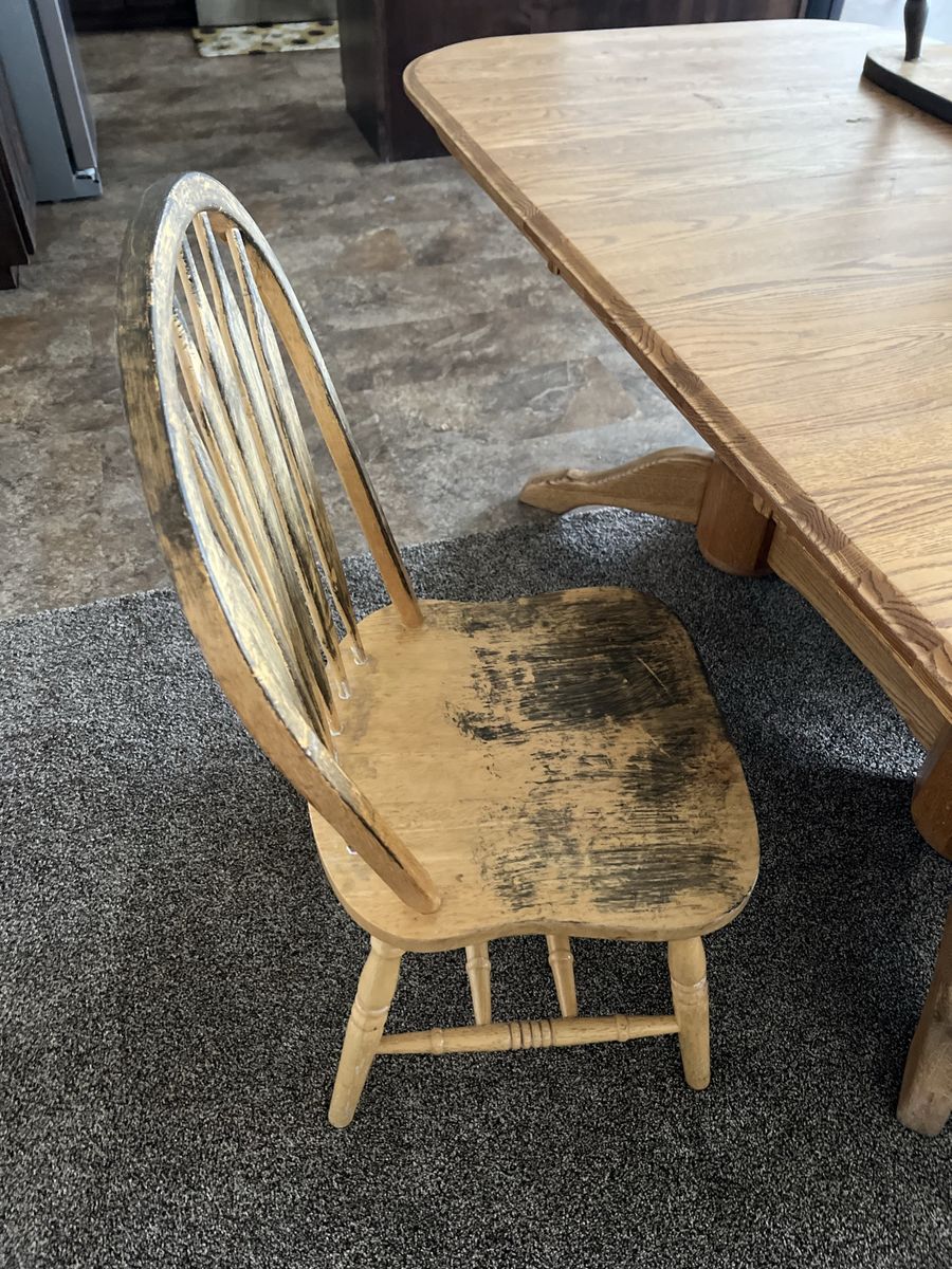 VenmoTable with 6 chairs, and another leaf under table. Photo only shows 3 chairs but I have 6 to give with table. The other three are just in the garage. Was going to paint brown but didn't want to spend the time on it and ended up getting a different table