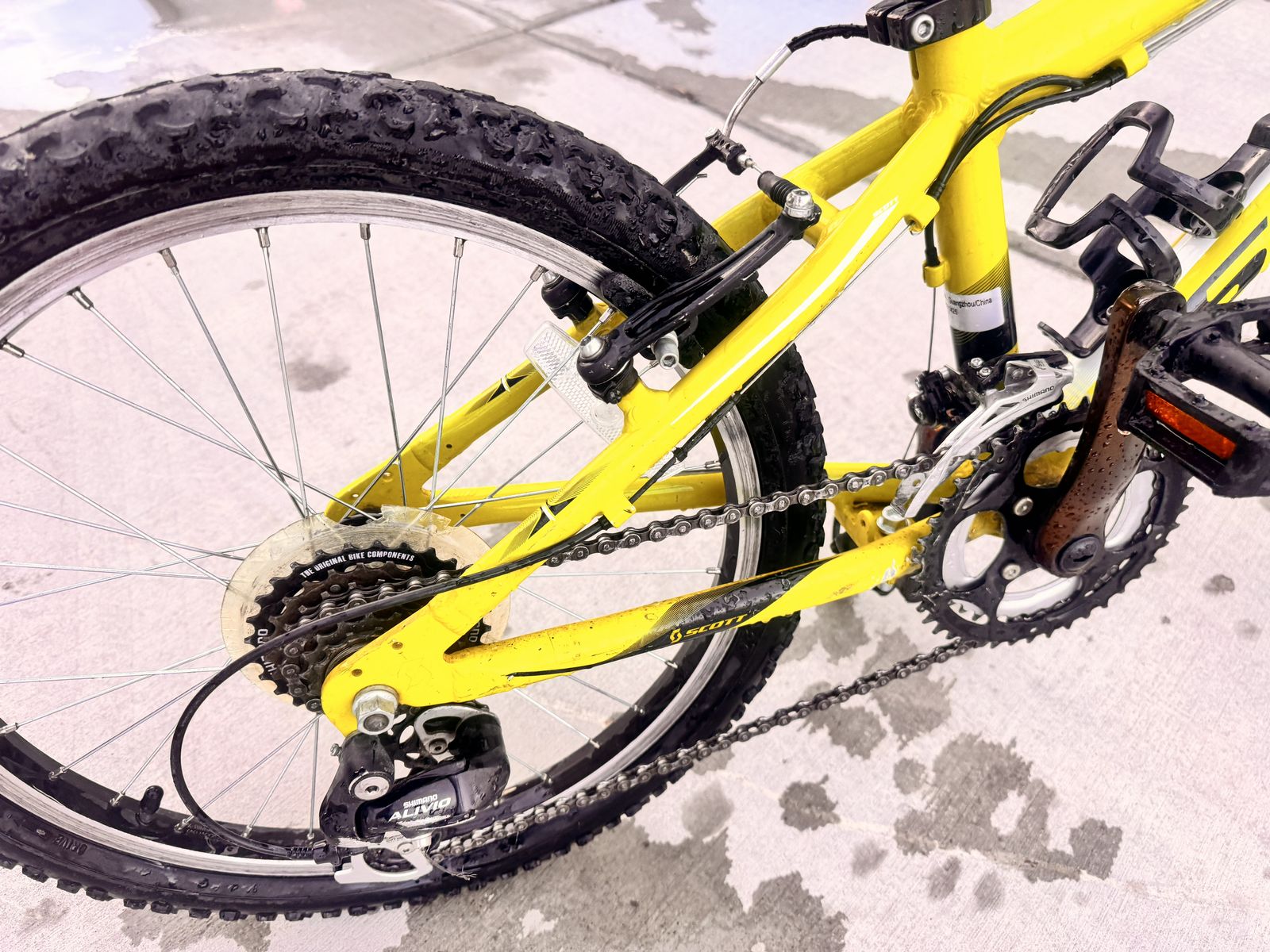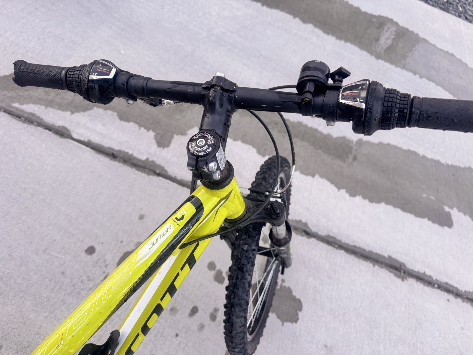 VenmoGreat little Scott 20” mountain bike in good used condition. Bright yellow frame with front suspension, 6‑speed Shimano Altus rear derailleur, grip shifters, and V‑brakes front and rear. Shifts and brakes work well, and it’s ready for a kid who wants to ride around the neighborhood or on easy trails. • 20” wheels • Front suspension fork • 6‑speed rear / 3‑ring front (18 gears total) • Lightweight junior‑sized frame • Bottle cage and rear reflector included Has normal cosmetic wear and a bit of surface rust on some bolts/crank arms, but nothing that affects riding. Stored indoors most of its life and just washed and checked over. Cash or Venmo only. Located in Layton. If the ad is up, it’s available—text preferred.