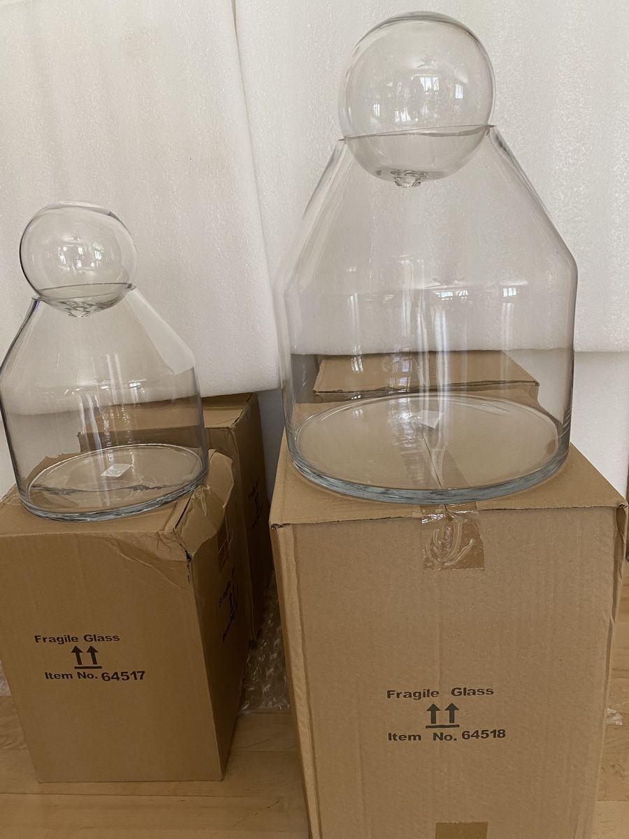 I have two sets of these decorative clear glass jars to sell, that can be used for table decorations and/or a centerpiece.