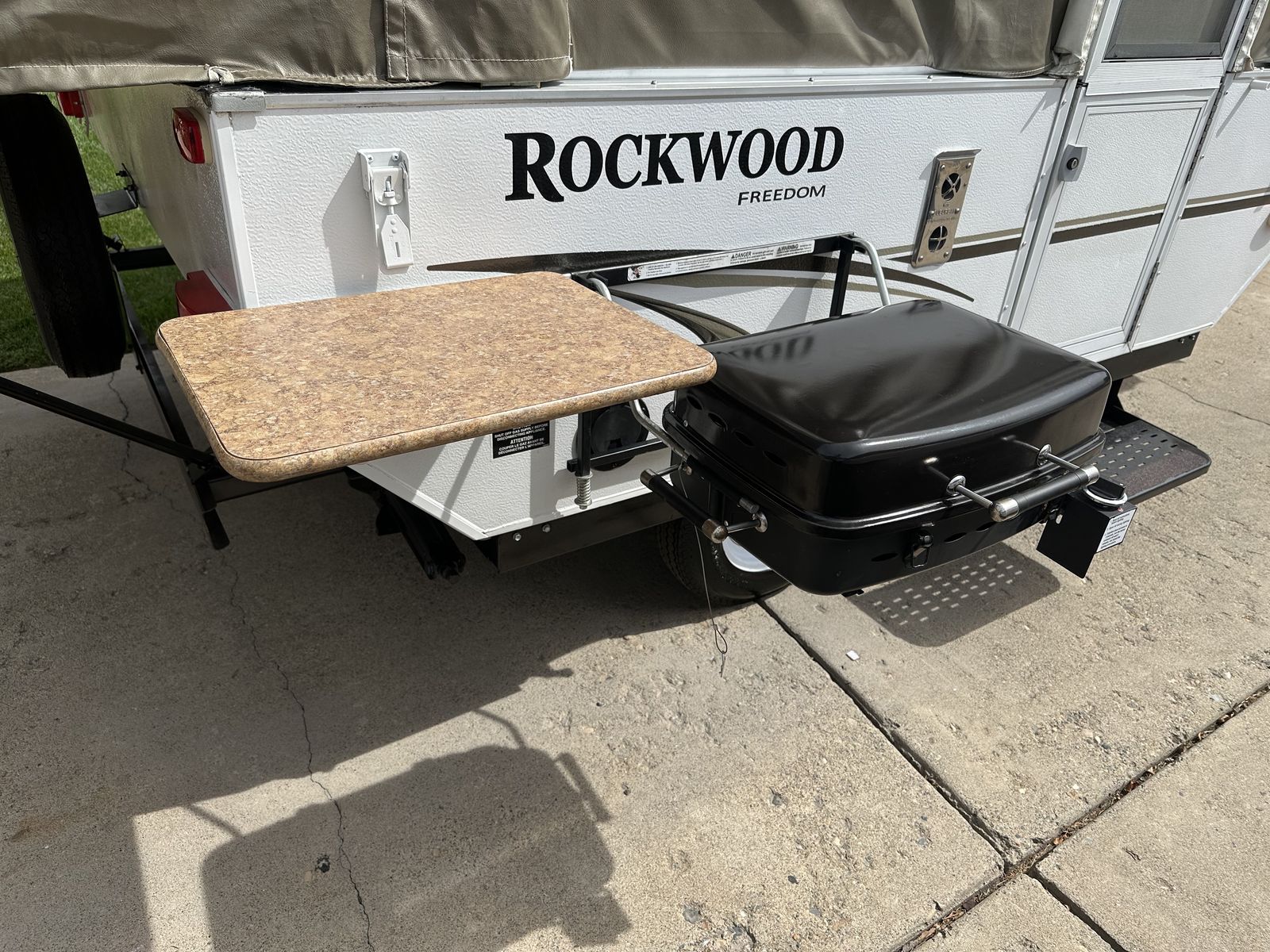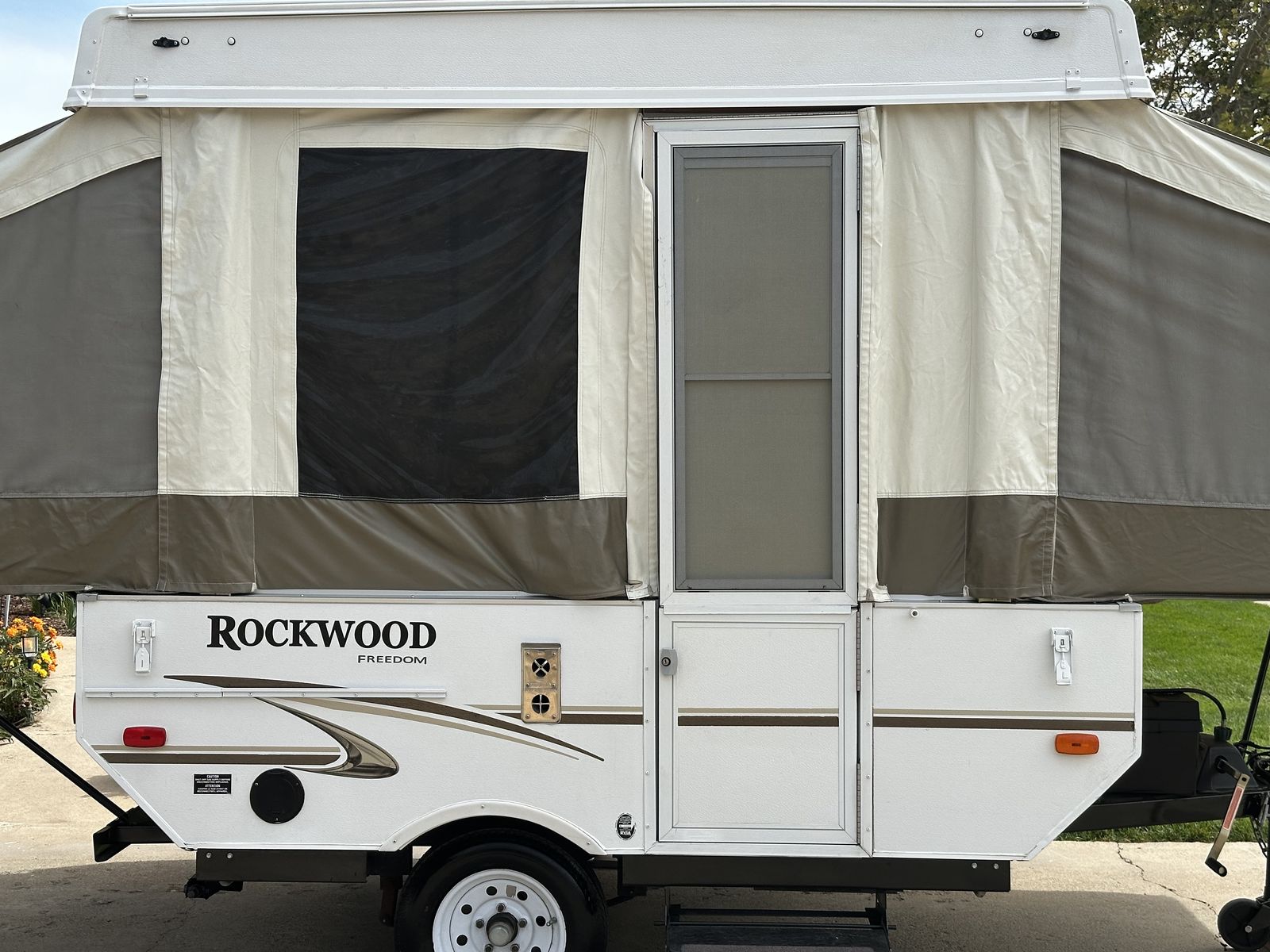 This camper has been pampered. Because the levelors, stabilizers in the back are down where they get all the road dust, water and rocks they always looked all rusty and dirty every spring when I got the camper out. So - I got them POWDER COATED! Now they look great all the time. This cute outfit is worth a look.