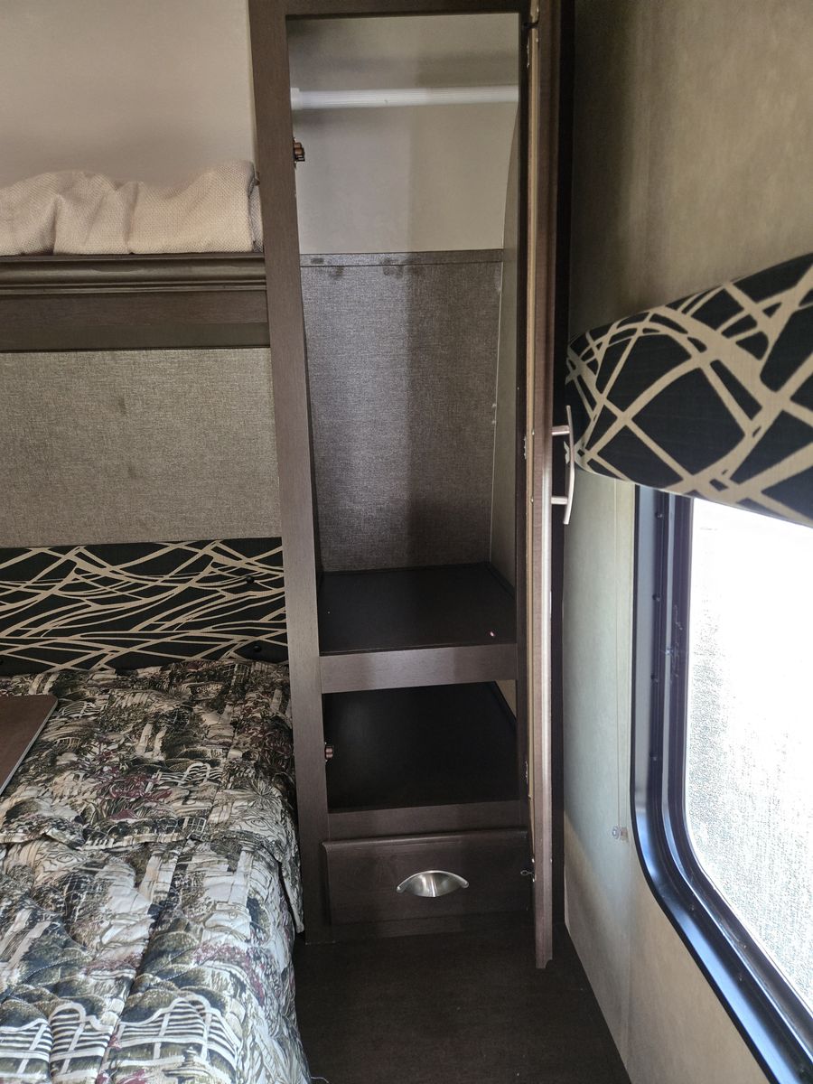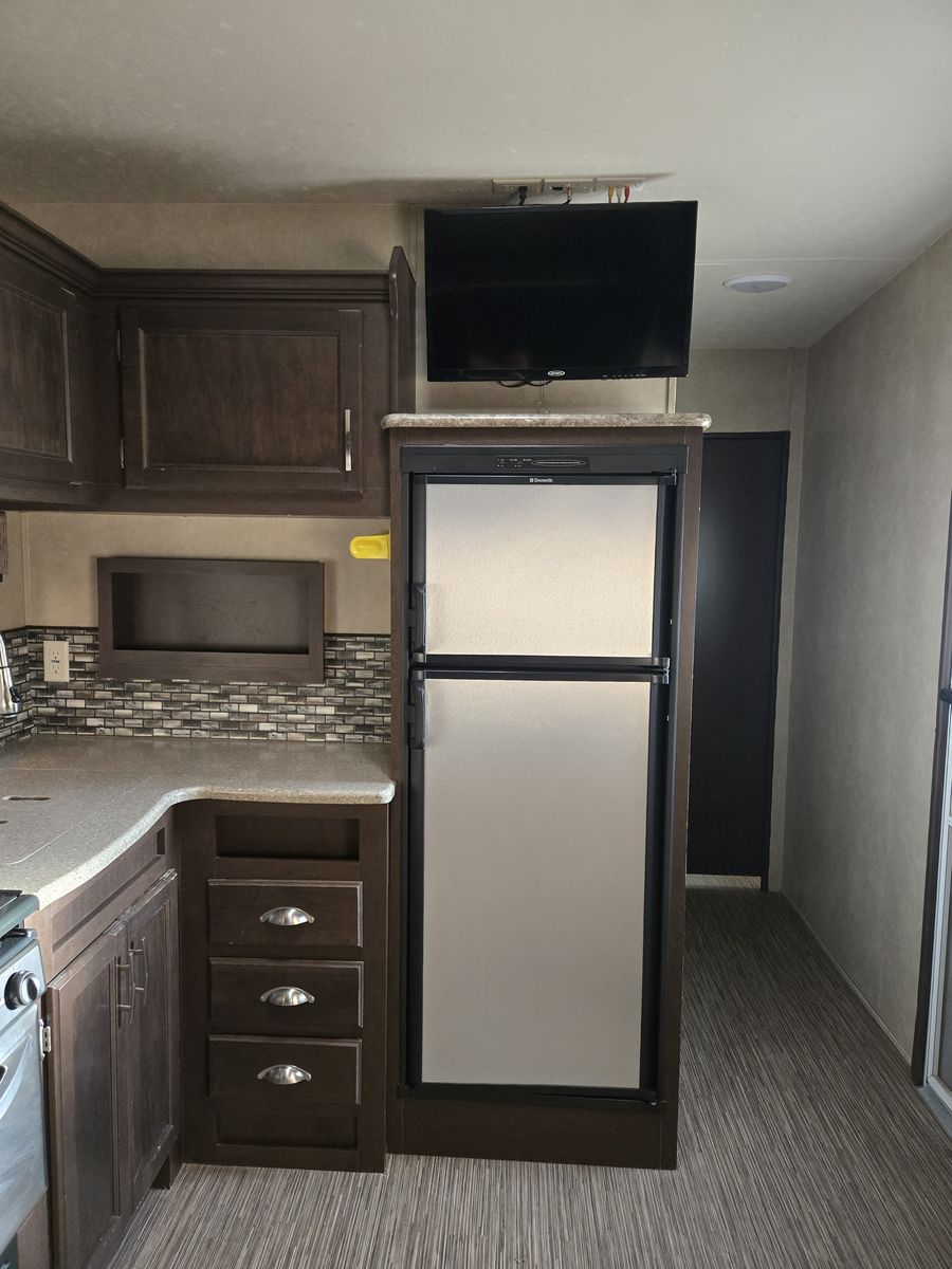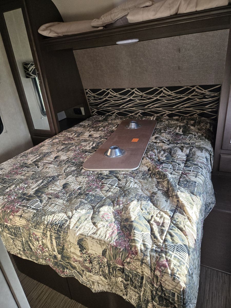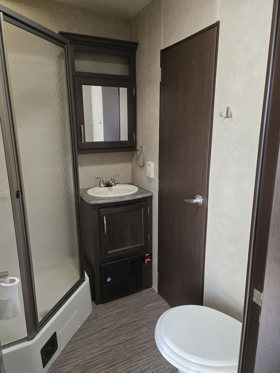 Whether you're heading to the woods or lake, you'll enjoy every minute in this spacious toy hauler. Theres a large garage space for your toys and a ramp door to easily load/unload them. Kitchen has large fridge, stove, oven and microwave. Seperate main bedroom with Queen bed and 2 doors. Larger bathroom with full shower. Message me for more details or to come look.