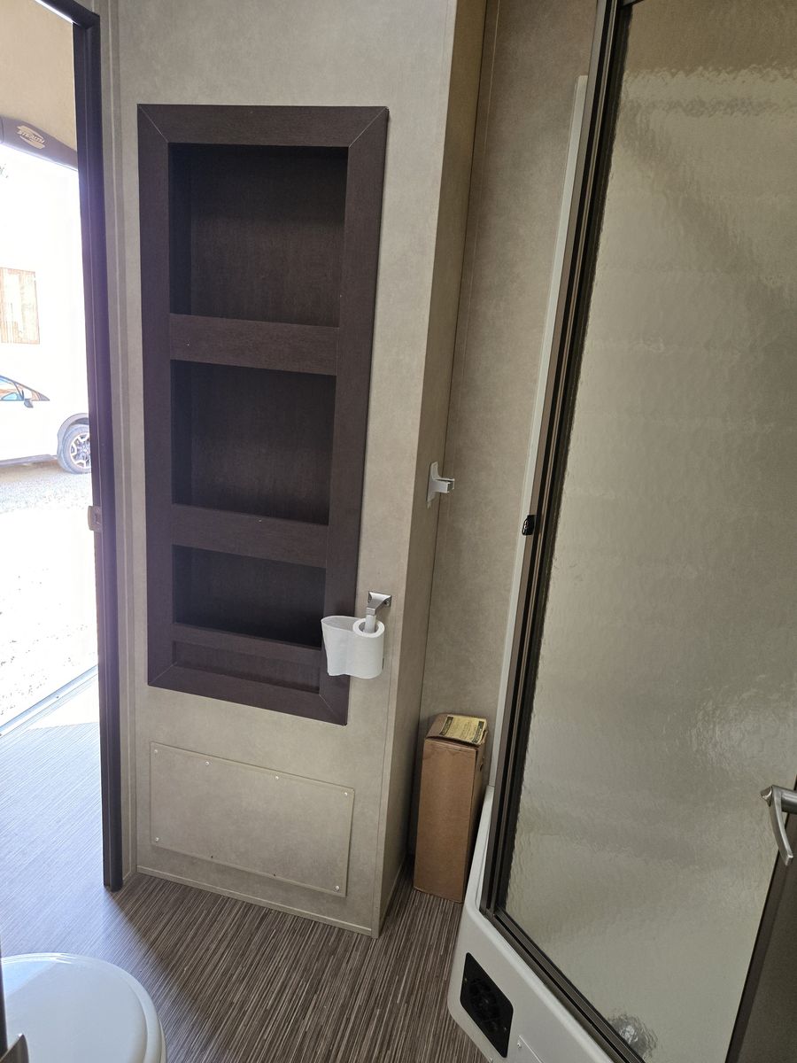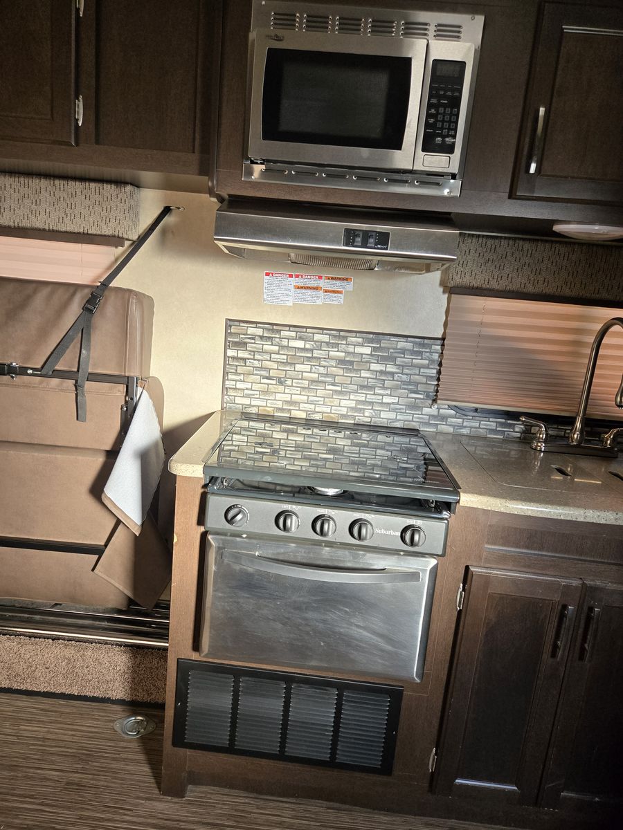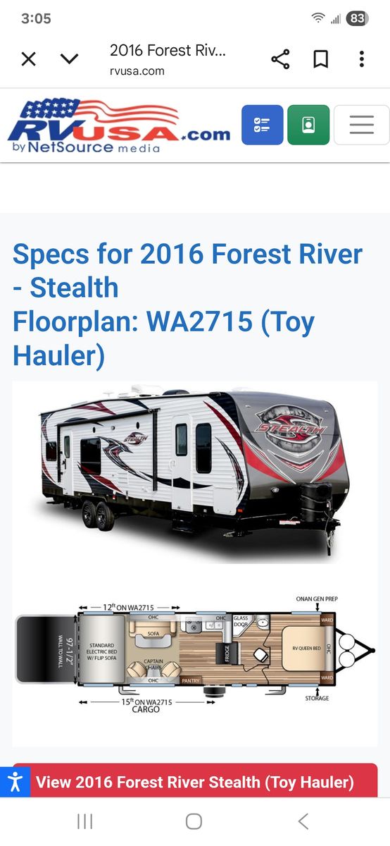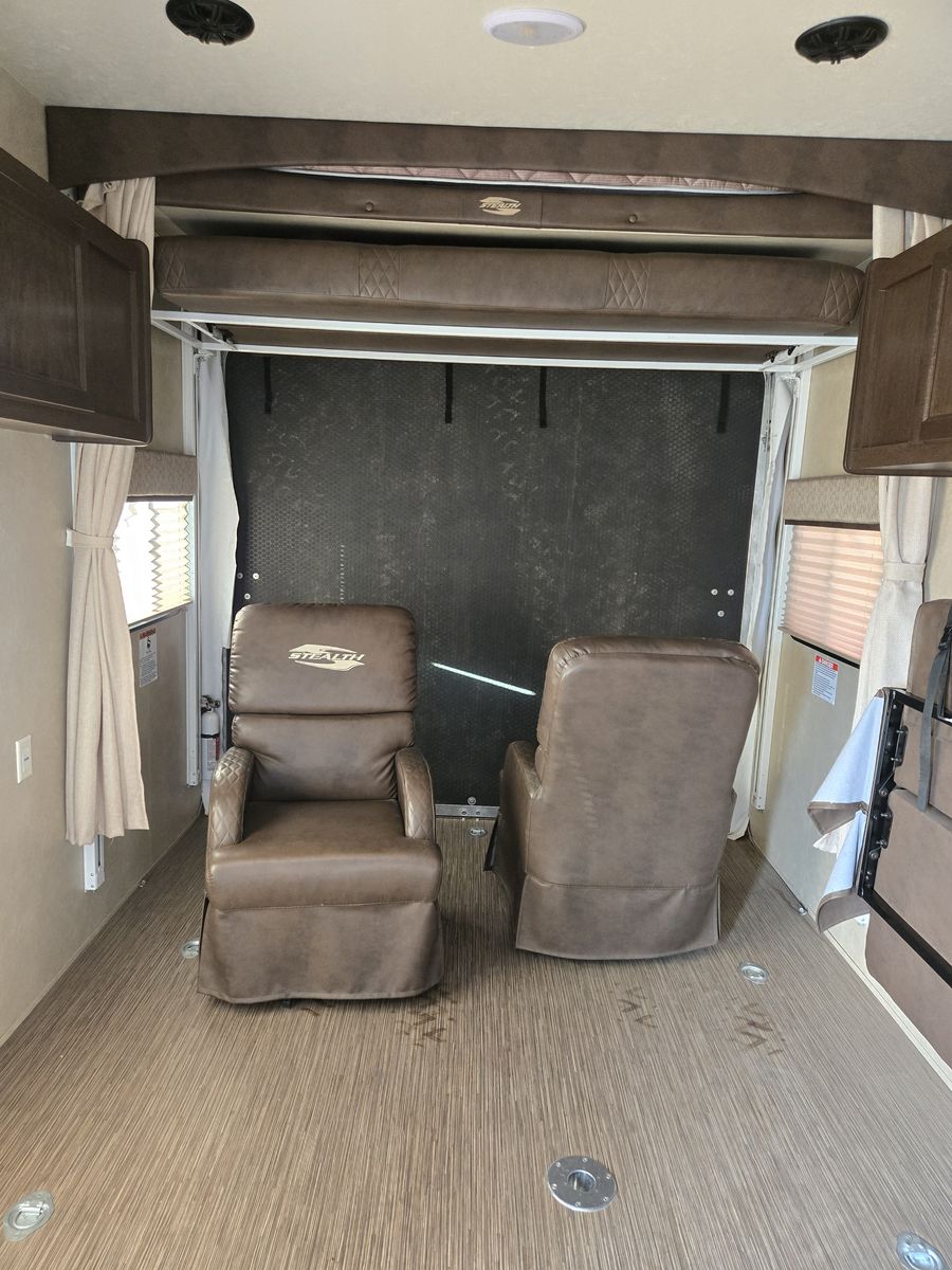 Whether you're heading to the woods or lake, you'll enjoy every minute in this spacious toy hauler. Theres a large garage space for your toys and a ramp door to easily load/unload them. Kitchen has large fridge, stove, oven and microwave. Seperate main bedroom with Queen bed and 2 doors. Larger bathroom with full shower. Message me for more details or to come look.