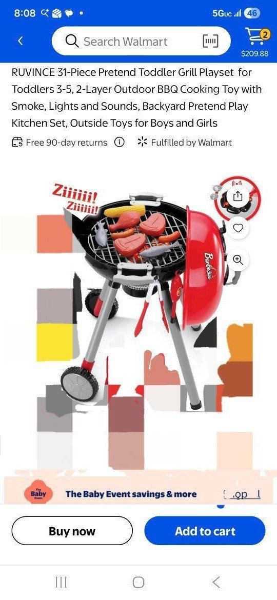 VenmoThis adorable space saving kids barbecue might help keep kiddos occupied while the adults are contending to the real deal. Everything pictured is included. (I hope find other items to included)