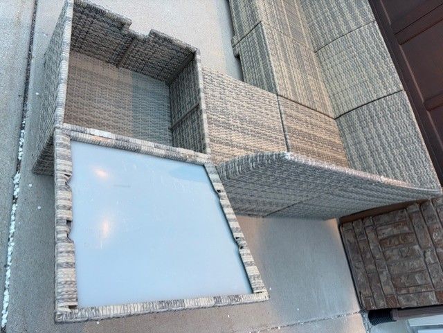 This sectional is in great condition with some minor wear and tear. Each piece is separate so you can configure how you would like. Set comes with connector to use to keep sections together.
