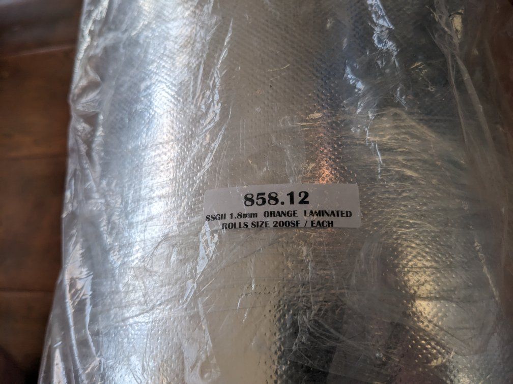 VenmoApprox 300 square feet of flooring underlayment. One unopened roll and half a roll leftover from a recent project. Orange rubber with foil vapor barrier. Great for a small remodel.