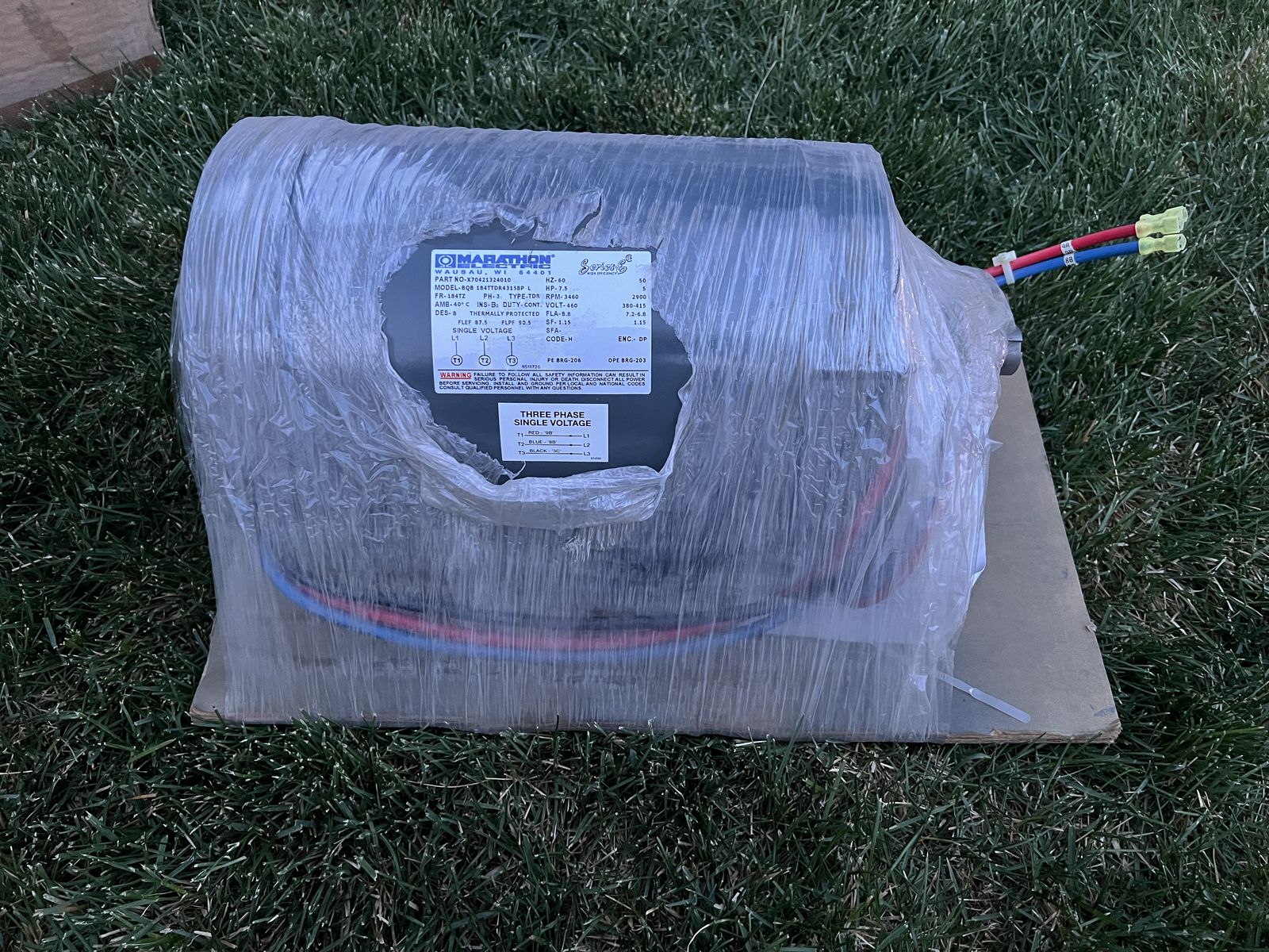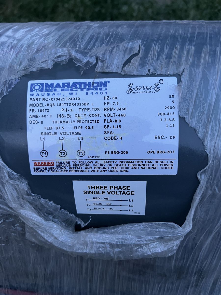 Marathon Electric Series E high-efficiency motor new condition. This motor has been sitting in storage and has never been used.