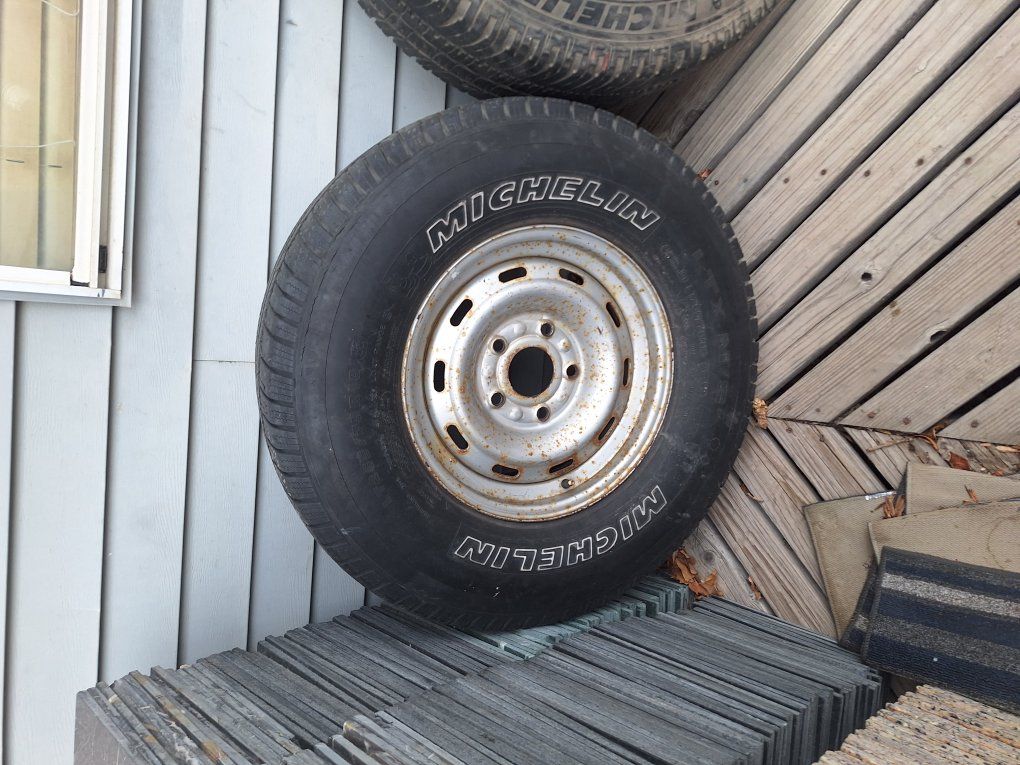 VenmoStock Ram rims with tires of 2005 Ram 1500, Four OEM Chrome 17" 5x5.5 bolt pattern. Tires are pretty much gone. Plus a steal 16" 5x5.5 spare tire is fairly good. That's 5 wheels and tires for $200. Asking $200 OBO.