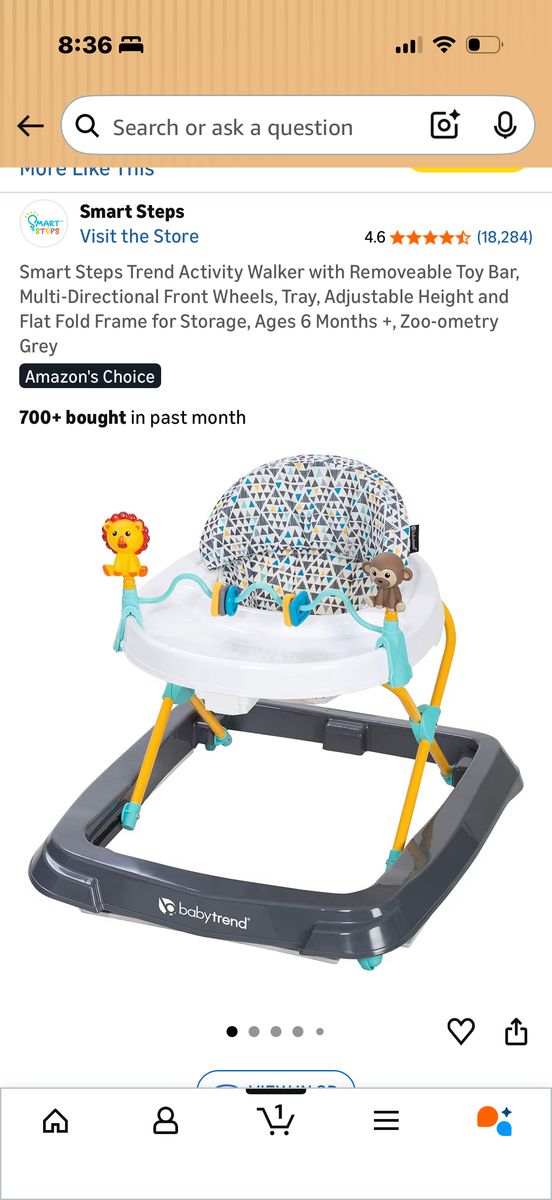 VenmoMy son never actually used this as he was an early walker. He sat in it a total of three times. Save yourself the time putting it together. Smart Steps Trend Activity Walker with Removeable Toy Bar, Multi-Directional Front Wheels, Tray, Adjustable Height and Flat Fold Frame for Storage, Ages 6 Months +, Zoo-ometry Grey.