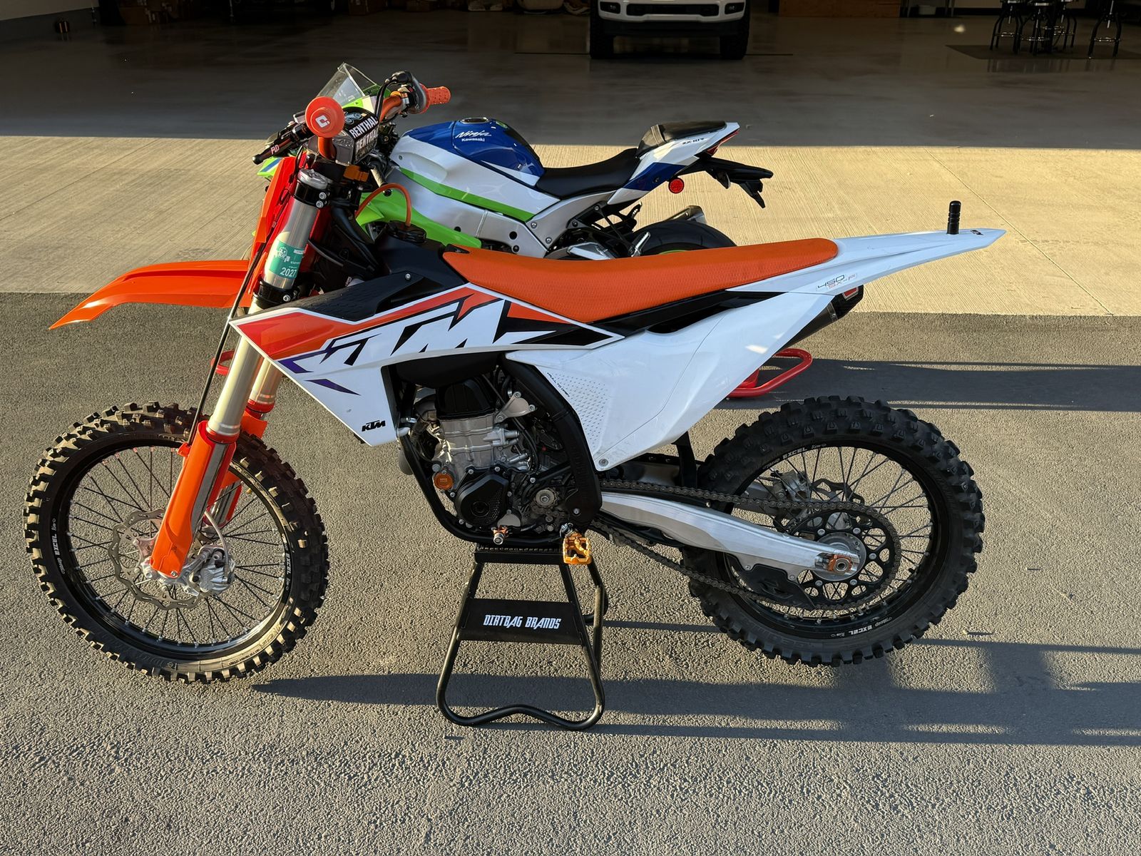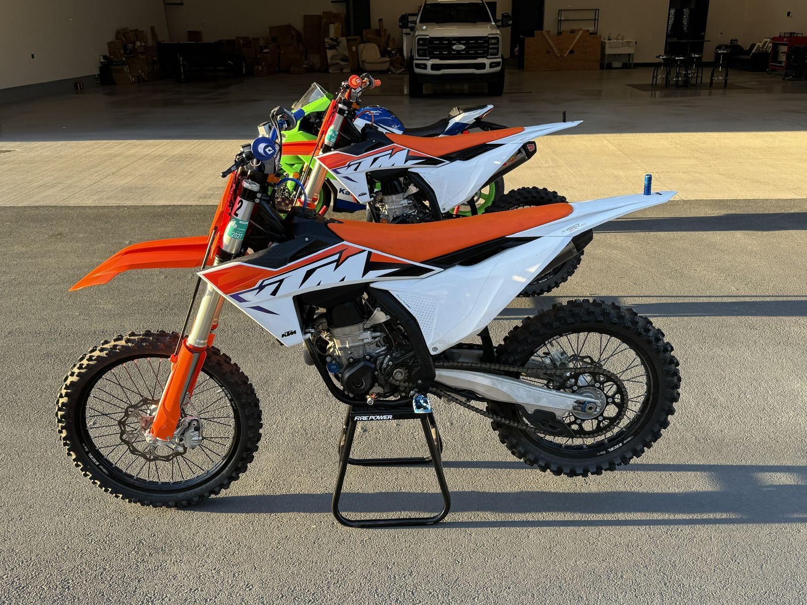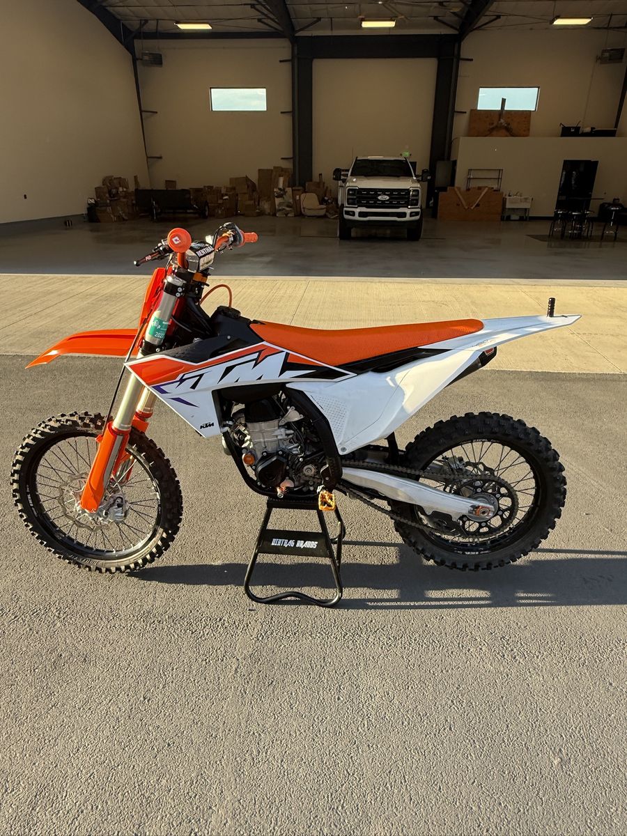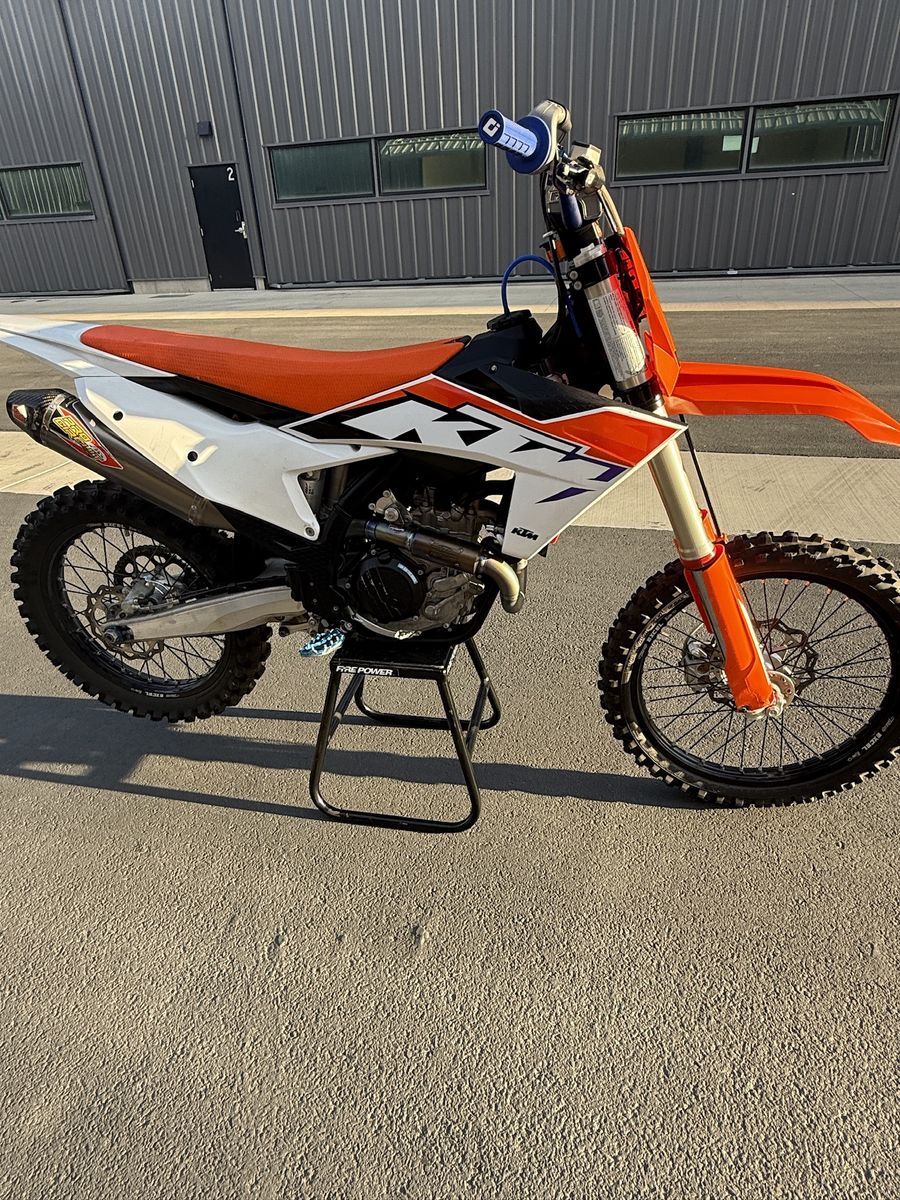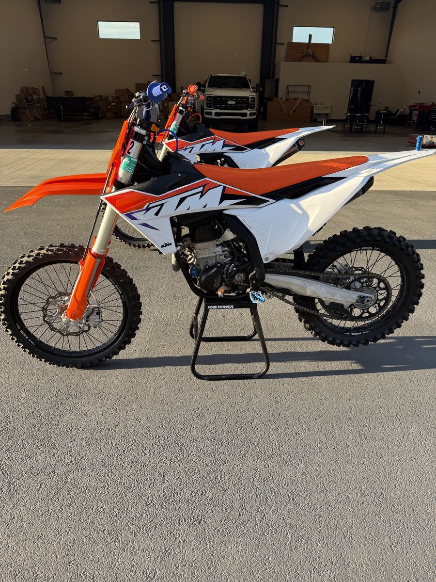 2023 KTM 450 SXF (with orange highlights) – Asking $11,000