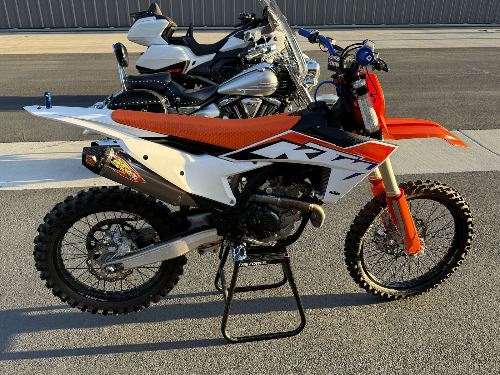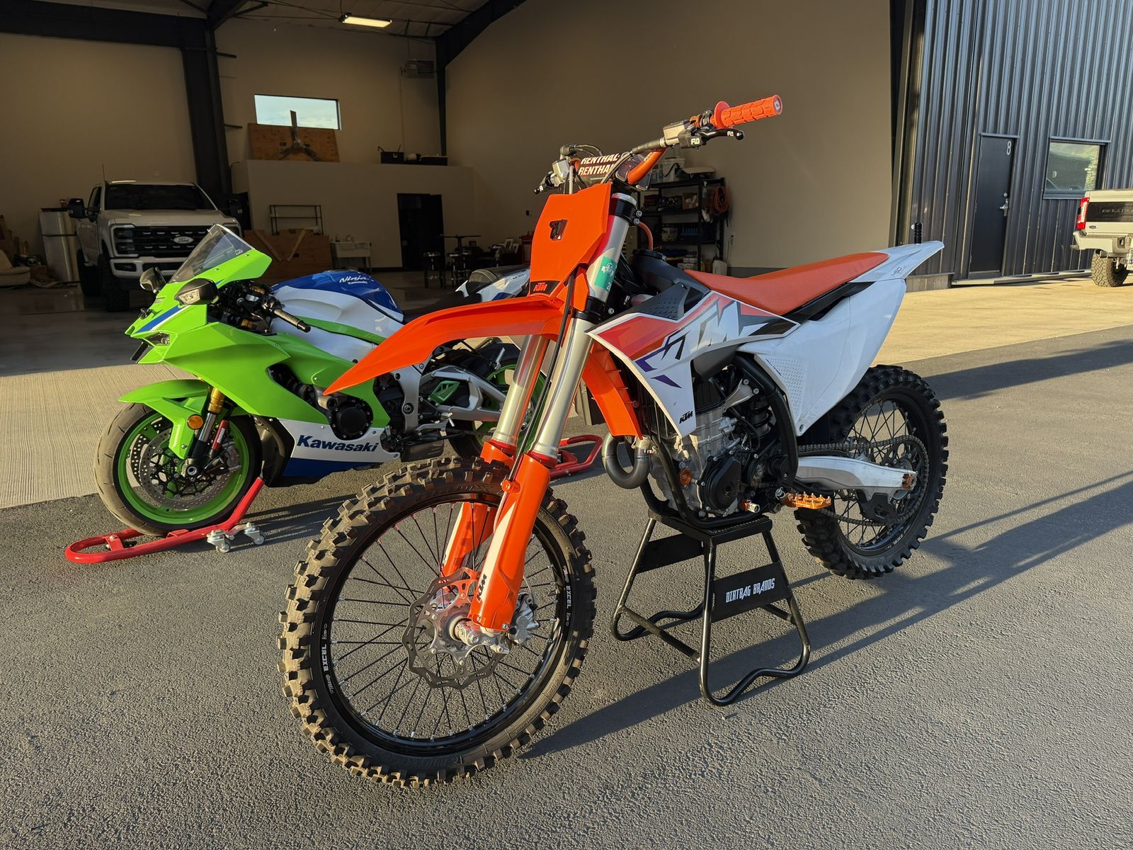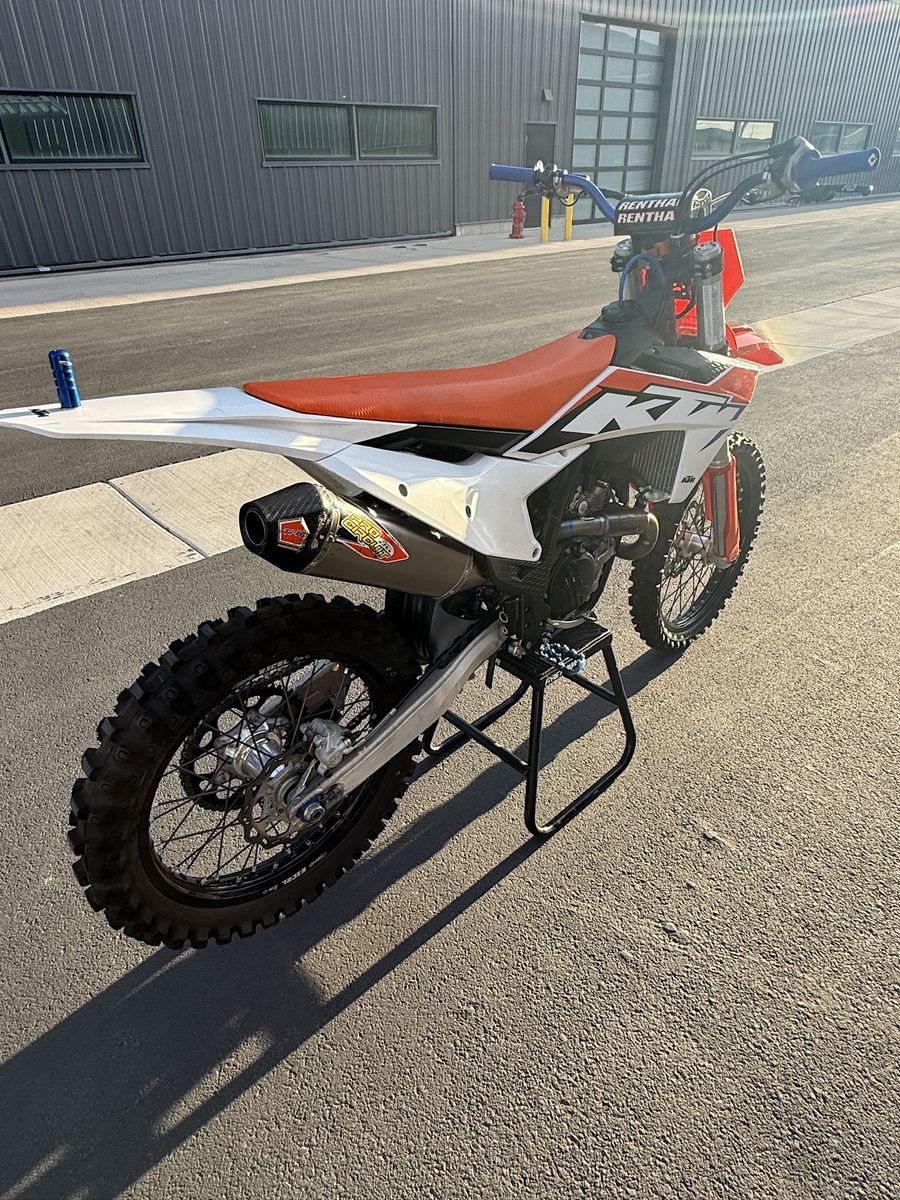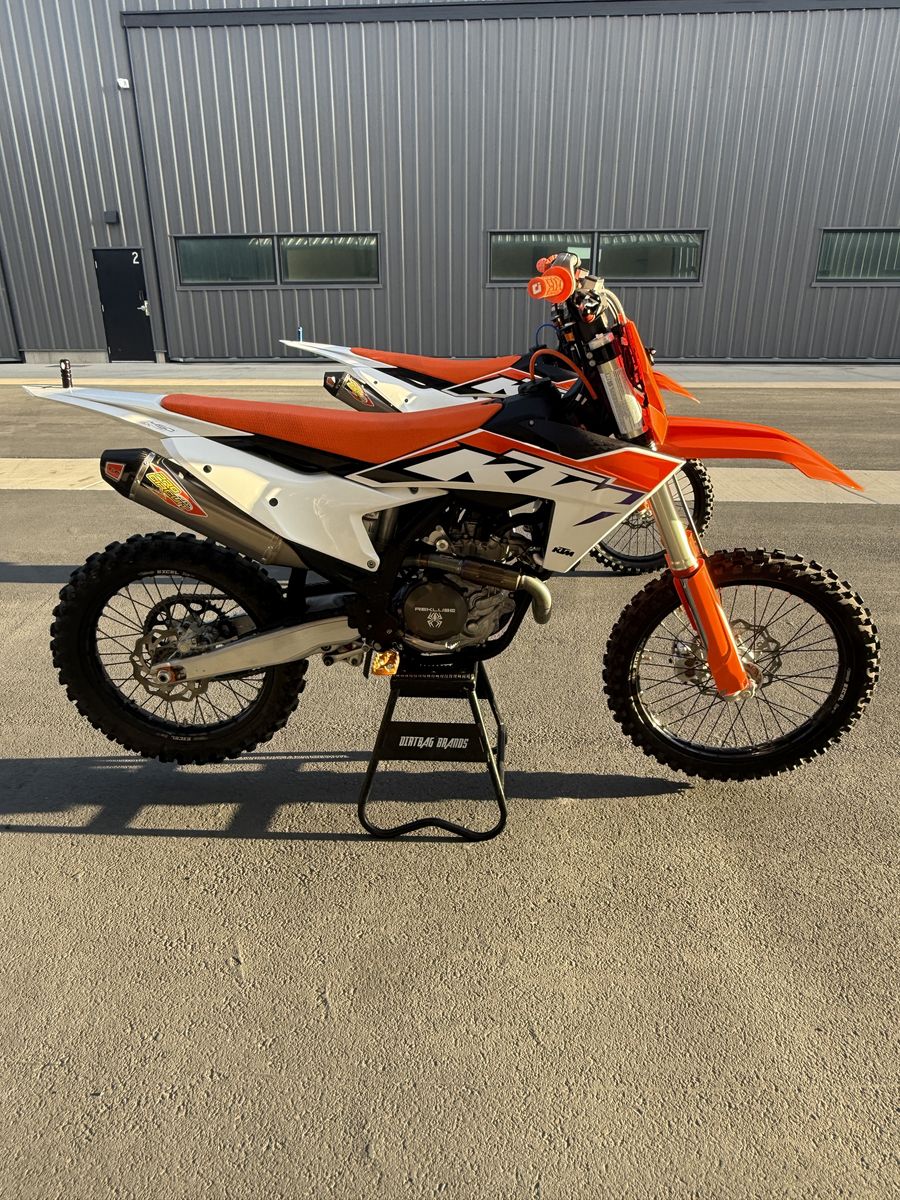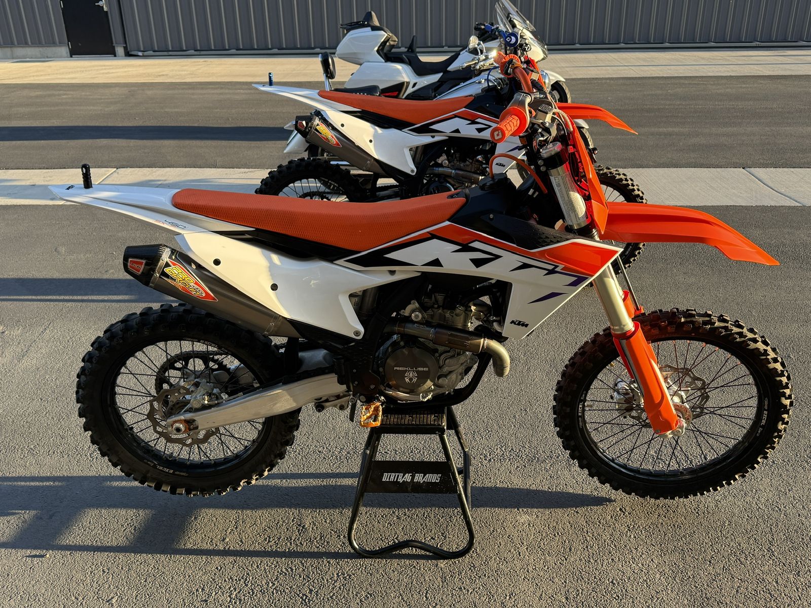 2023 KTM 450 SXF (with orange highlights) – Asking $11,000