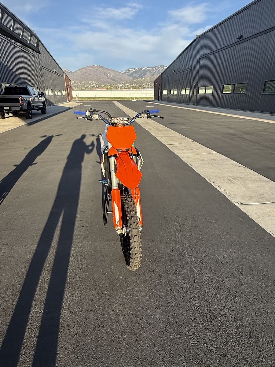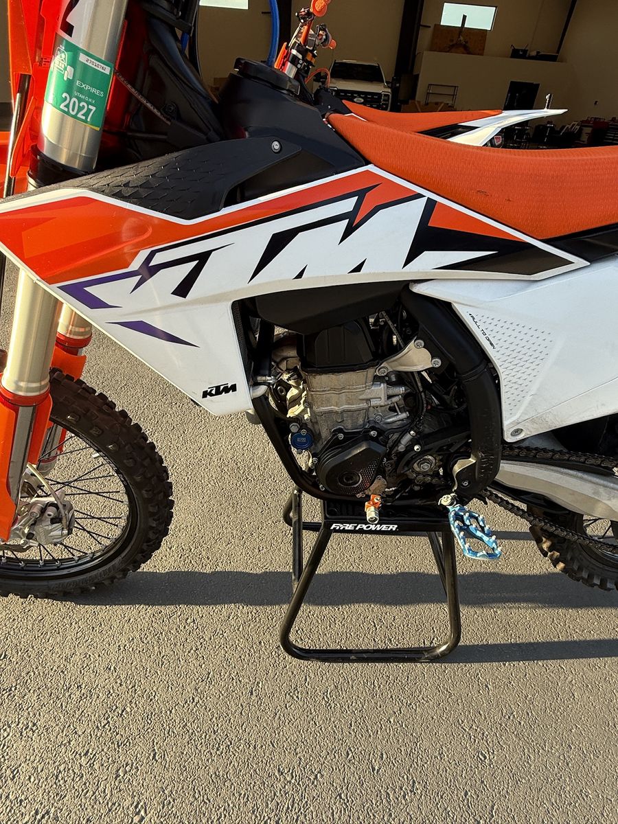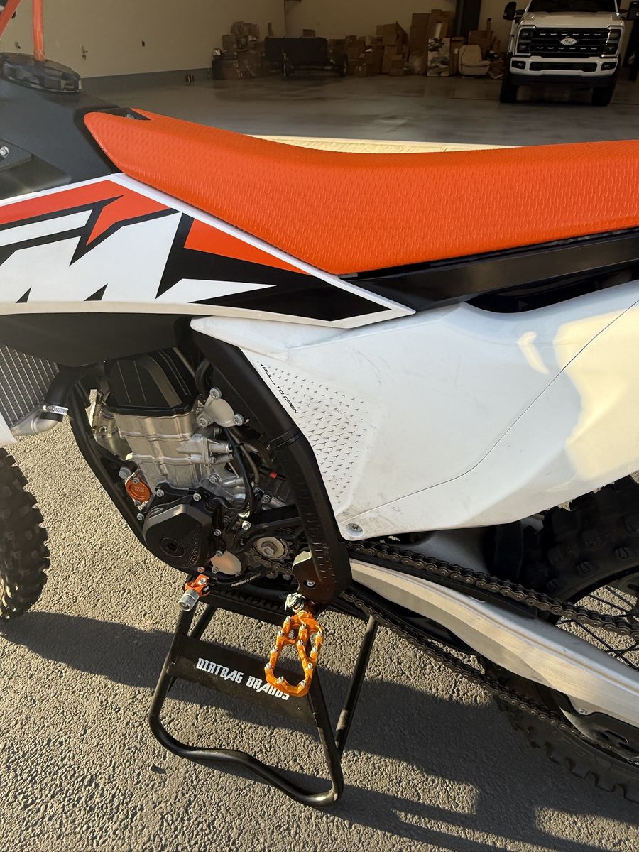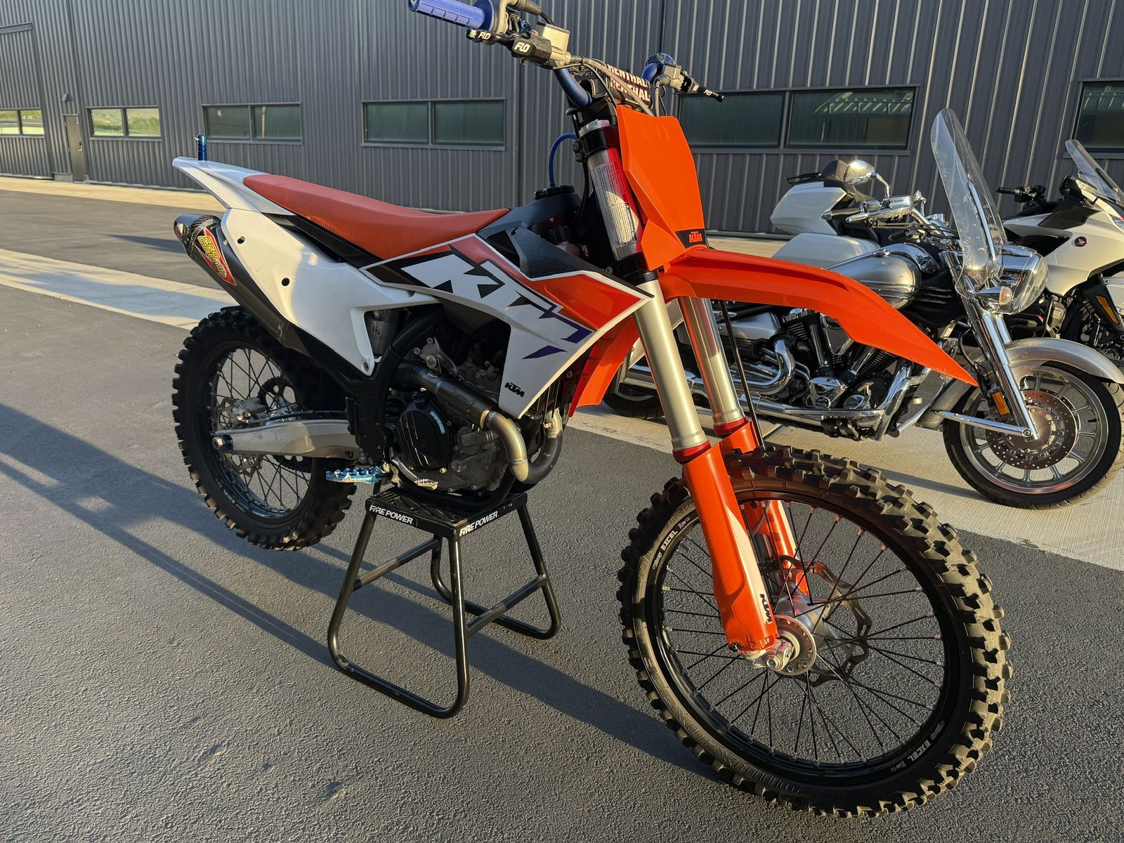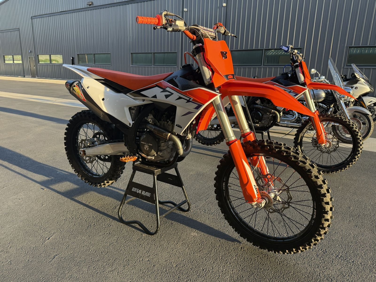 2023 KTM 450 SXF (with orange highlights) – Asking $11,000