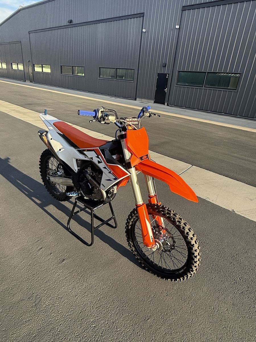 2023 KTM 450 SXF (with blue highlights) – Asking $10,500