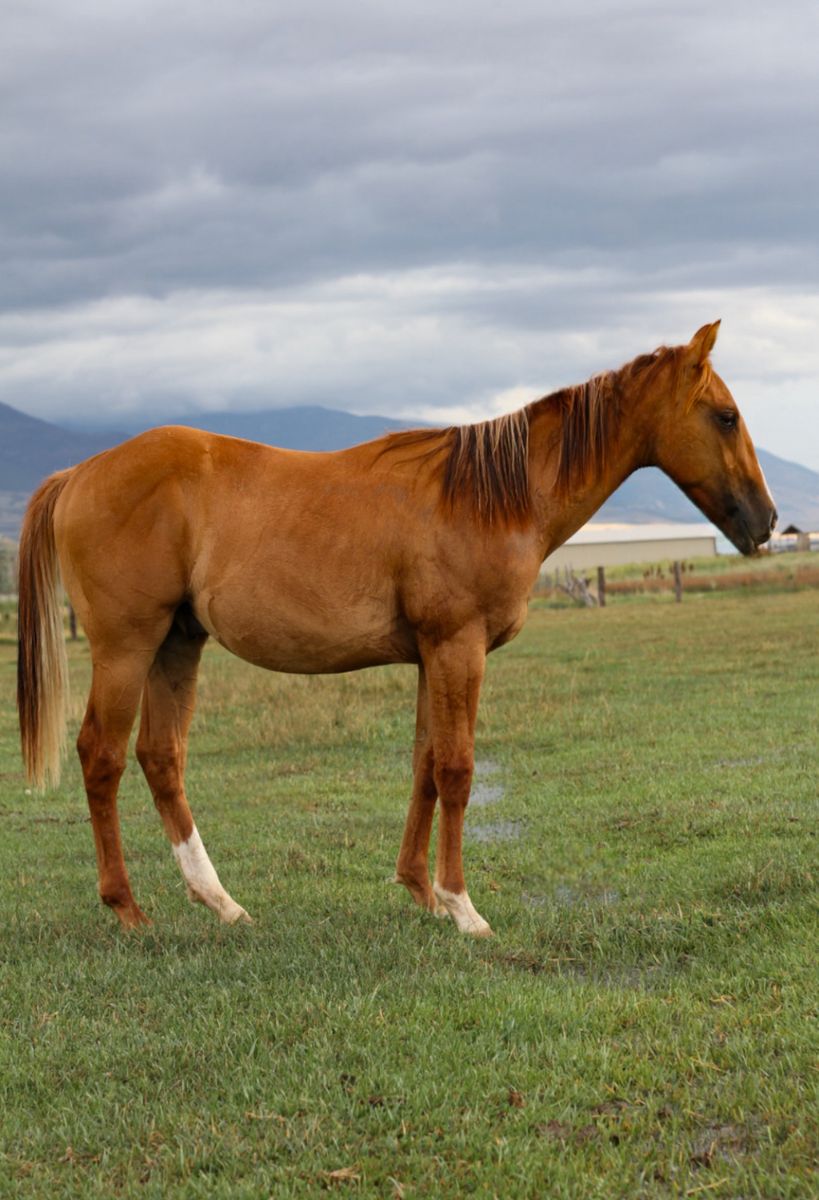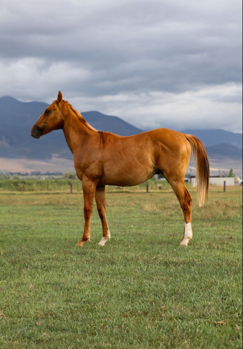 VenmoBarrel prospect. Texas will be two in the spring. Loads, ties, good for farrier, saddles, moves hind and front end, very well minded gelding who learns really fast. Other siblings are being started on the pattern and doing very well.