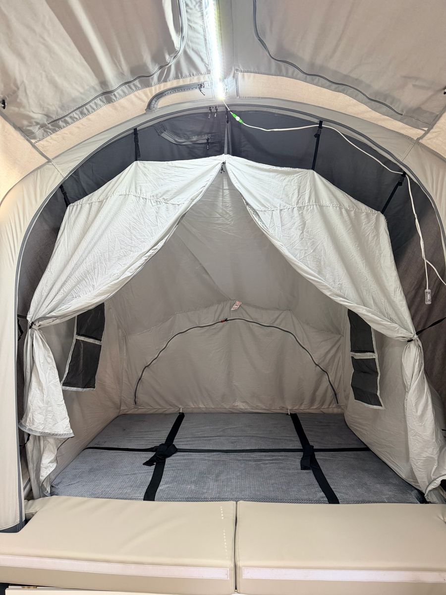 The OPUS OP4 is a versatile, all-terrain, self-inflating pop-up camper designed for both on-road comfort and off-road capability. It features patented air-beam technology, allowing the tent to fully inflate and set up in under 5 minutes without manual poles. Sleeps up to 6 people, featuring a durable, insulated, and lightweight design suitable for various vehicles. The OP4 can carry 40 gallons of onboard water, allowing you to go further and stay longer!