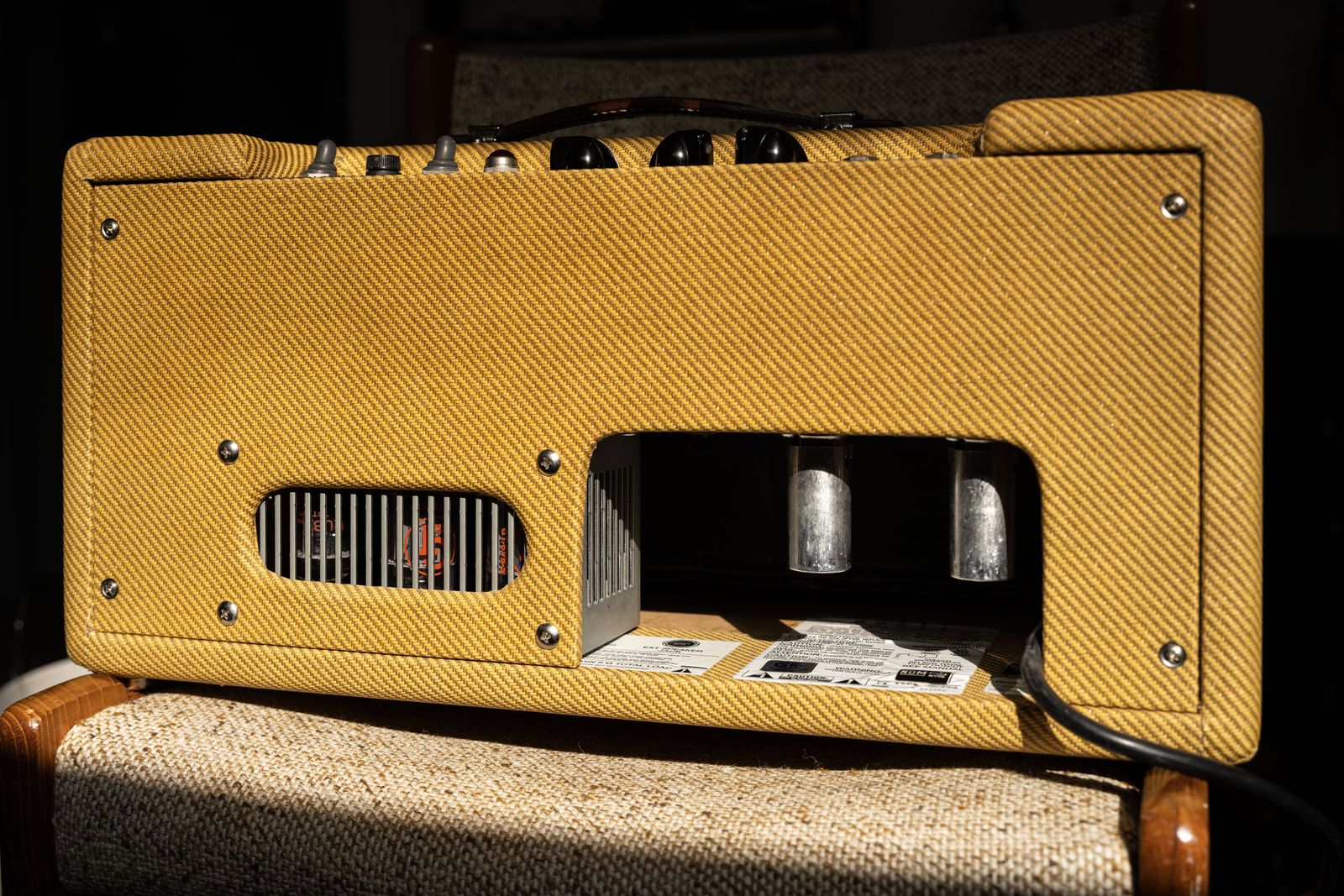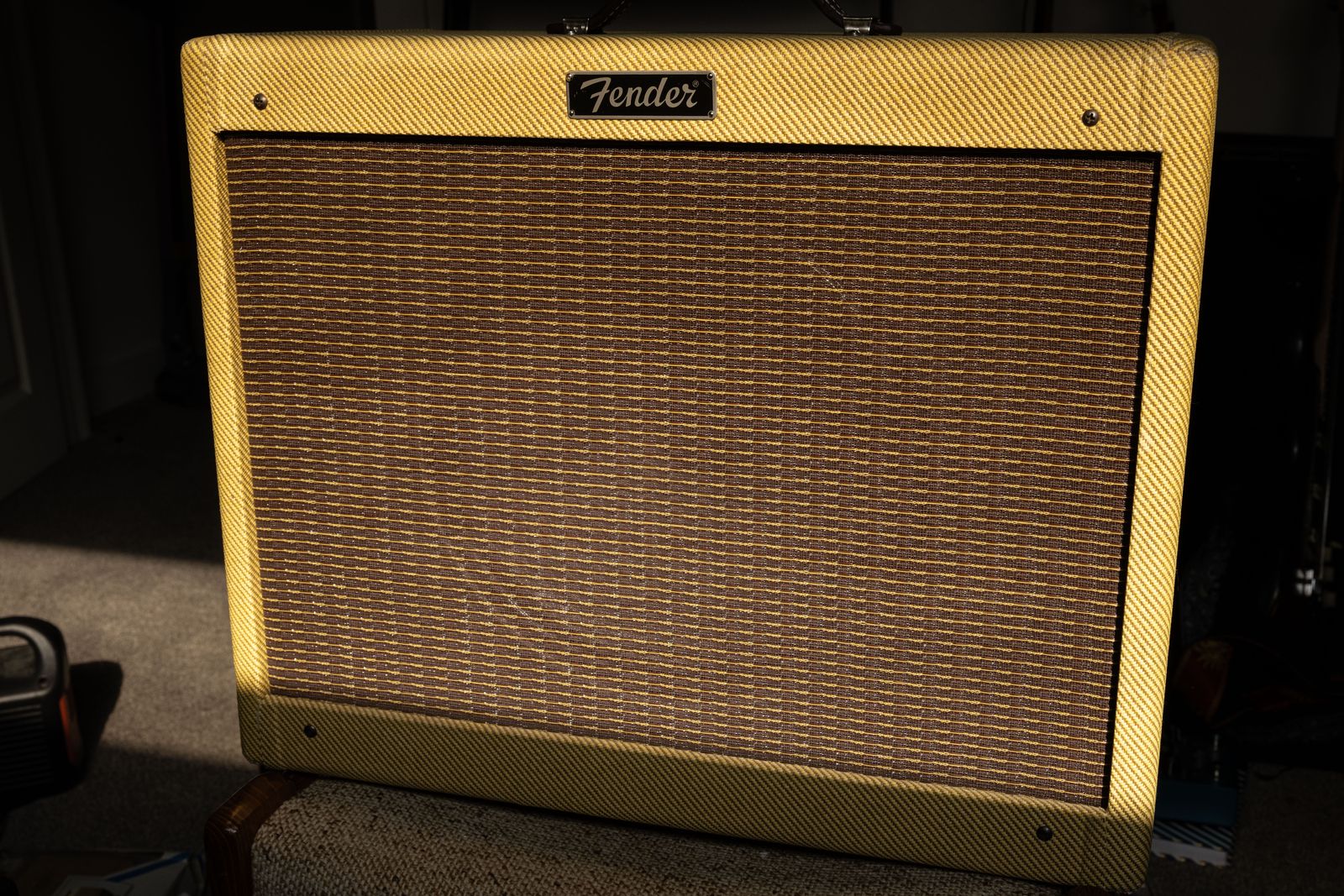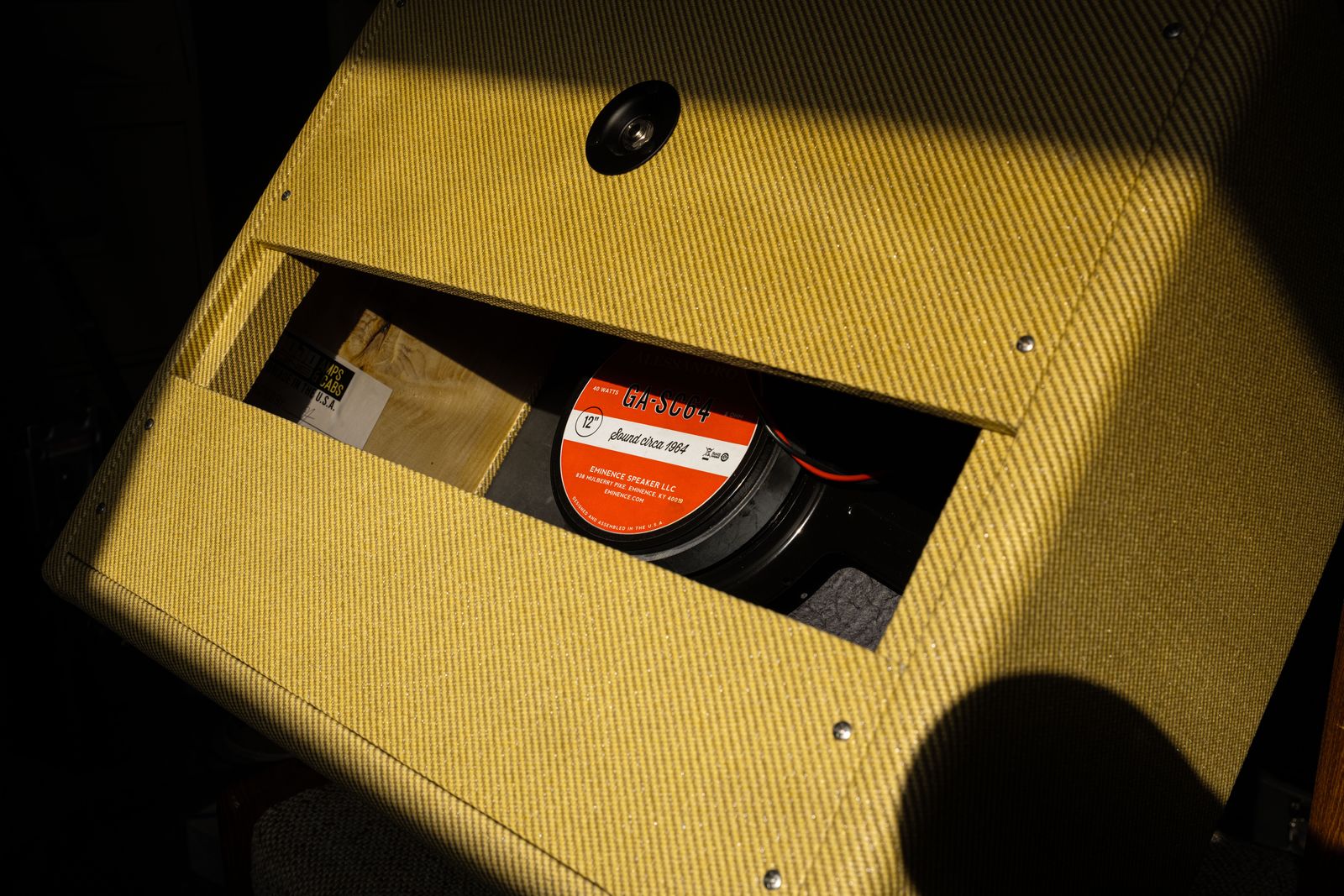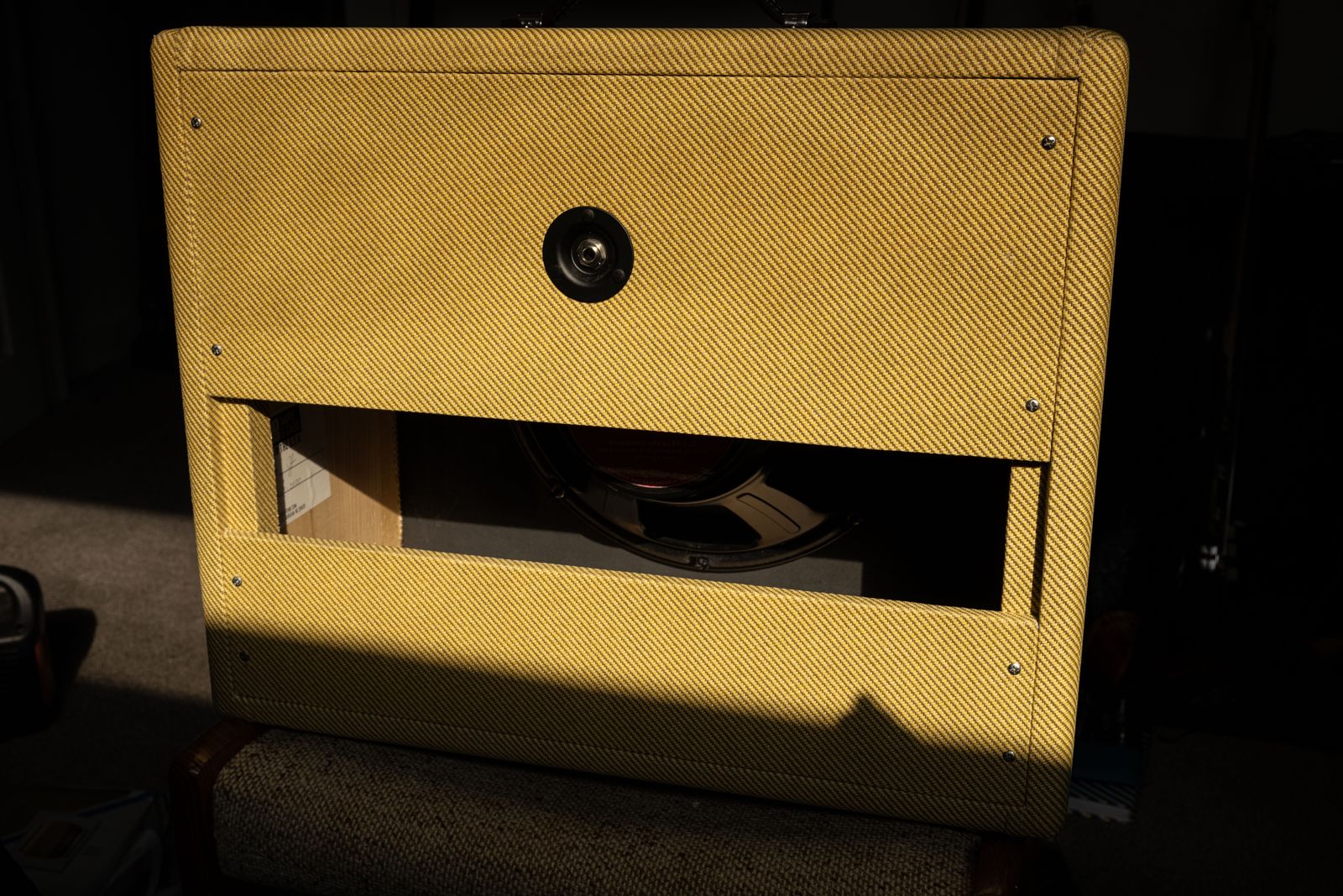 Fender didn't make a cab specifically for it, rather promoted it with the Hot Rod Deluxe extension cab. The cab I have available is a MojoTone 1x12' cab with an 8 ohm Eminence Alessandro GA-SC64 speaker. This speaker sounds great with the amp and the tweed almost matches up pefectly. Can't really tell from a distance (if that's important to you.)