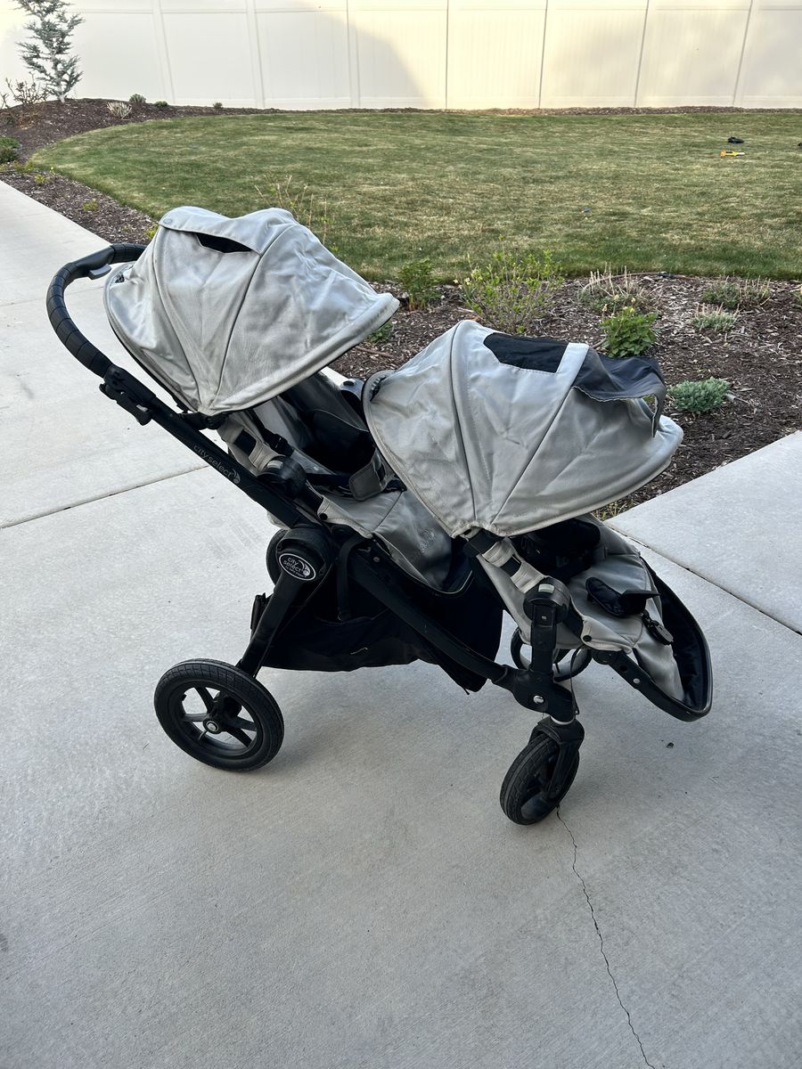 VenmoSeats remove and stroller collapses. Seats can face forward or back. Comes with rain cover and car seat attachment. There is a slight clicking noise when rolling (I’m sure it could be fixed, we just used it as is) but otherwise great condition!