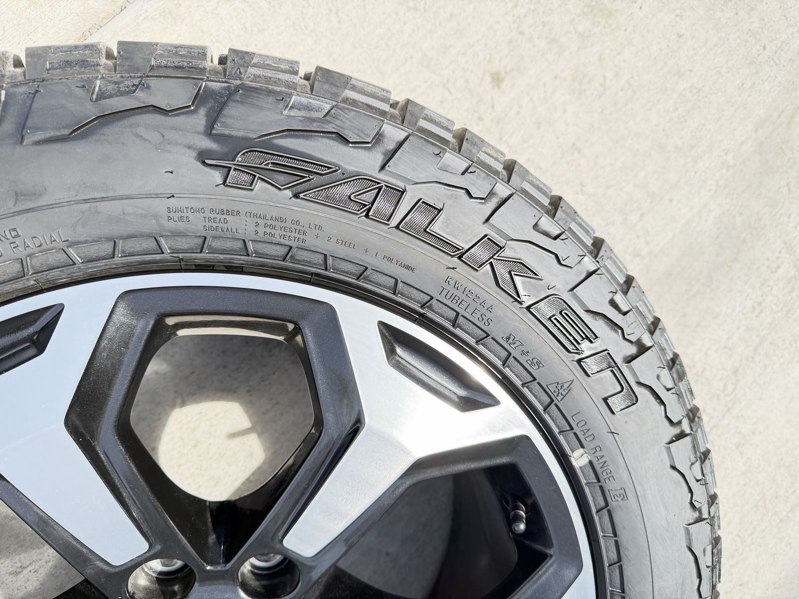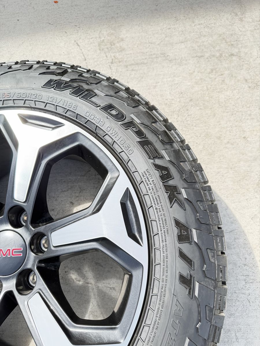 ZelleSet of 4-GMC Sierra 1500 Yukon Denali Rims and Tires 265/60R20 Falken Wildpeak AT3W in great condition, asking $1700 obo Rims are new only 200 miles on them Tires are like new 90% life left Comes with lug nuts and sensors I can sell the rims or tires separately Bolt pattern 6-5.5 or 6-139.7 They will fit gmc Sierra Yukon Denali Chevy Silverado Tahoe Suburban avalanche Text anytime 385-402-2292