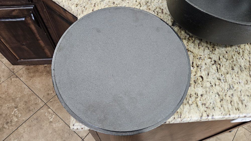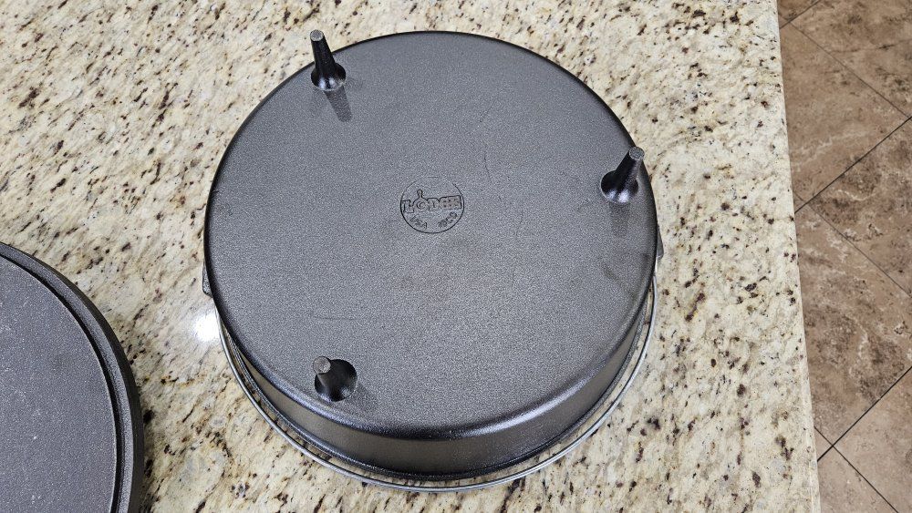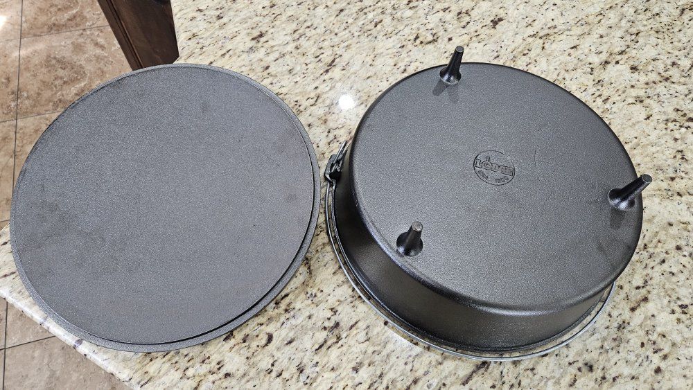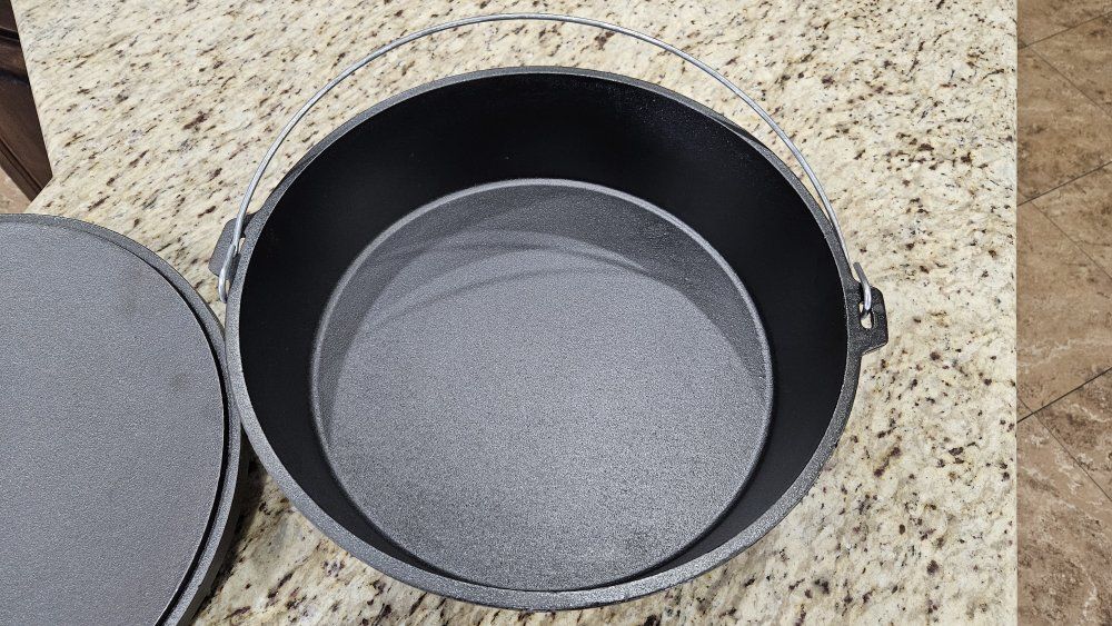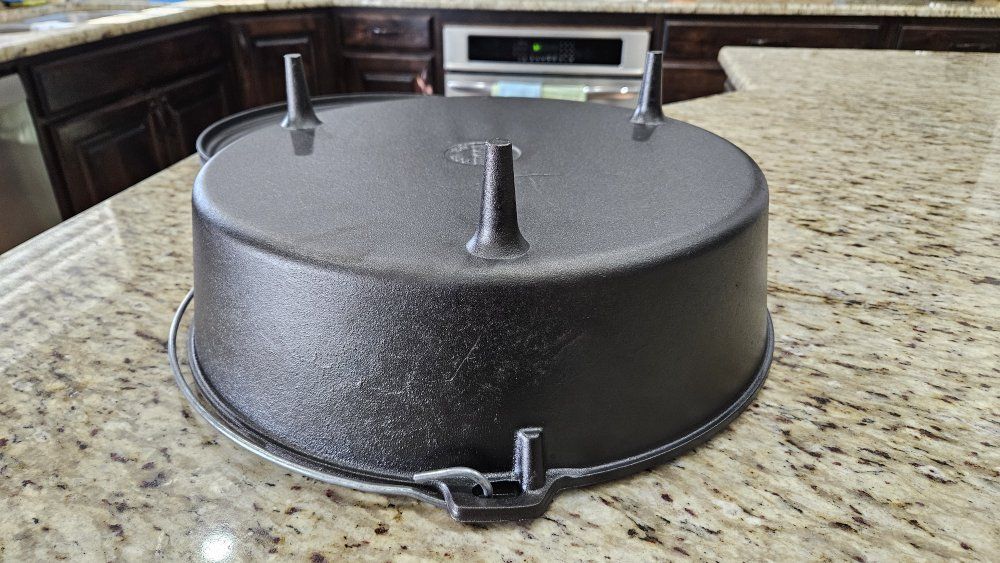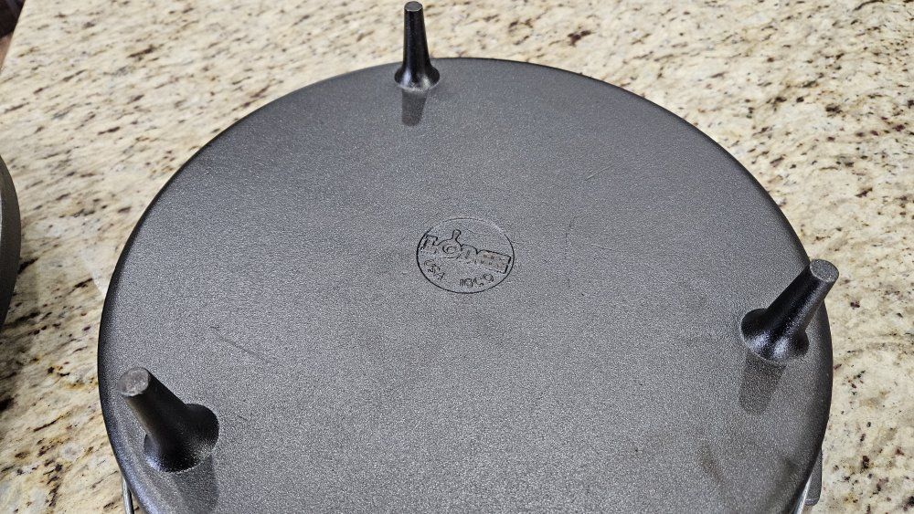 Lodge #16 Camp Oven Discontinued model. Collectible. Excellent condition New Old Stock Embossed Lodge #16 Dutch Oven. Never used. Original seasoning. Not stripped. Selling as is. A light wipe down with a damp rag. Clean inside and out.