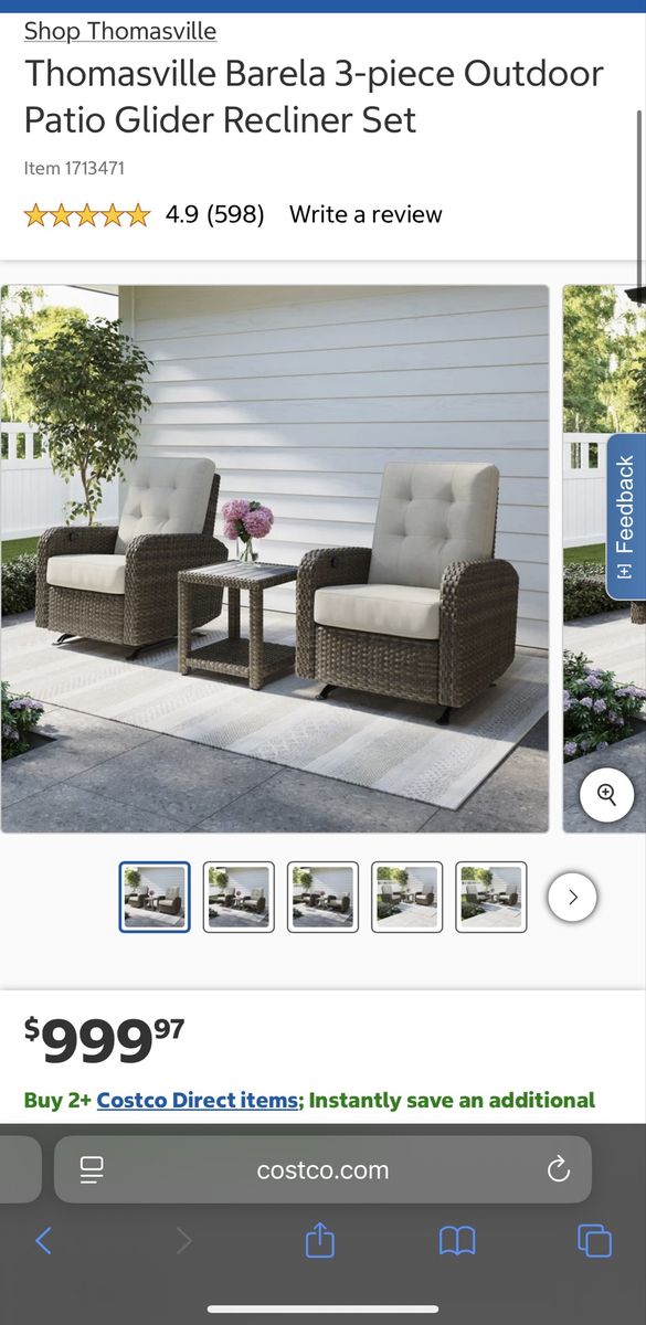 I am selling a Costco Thomasville Barela 3-piece Outdoor Patio Glider Recliner Set in good condition!