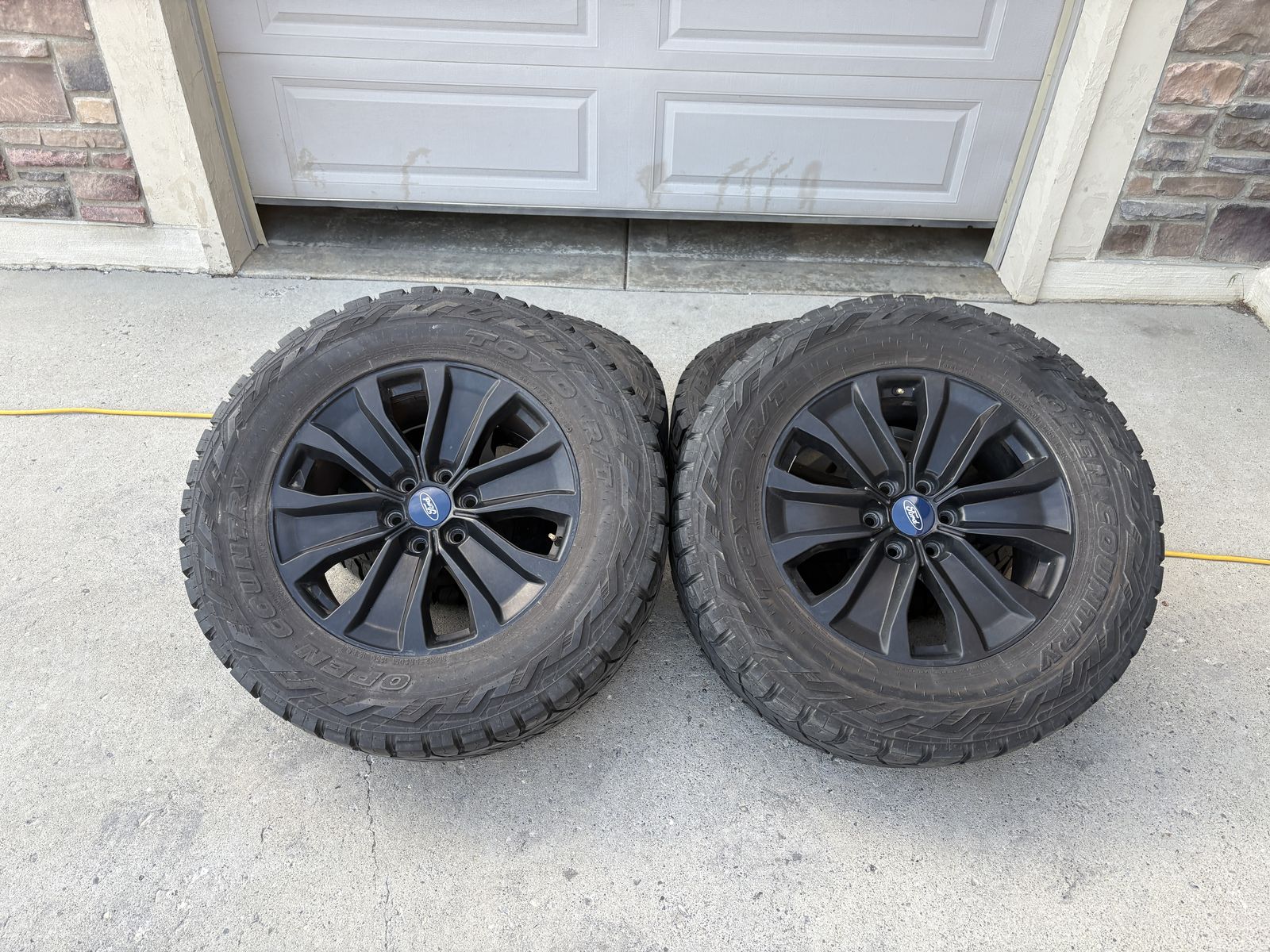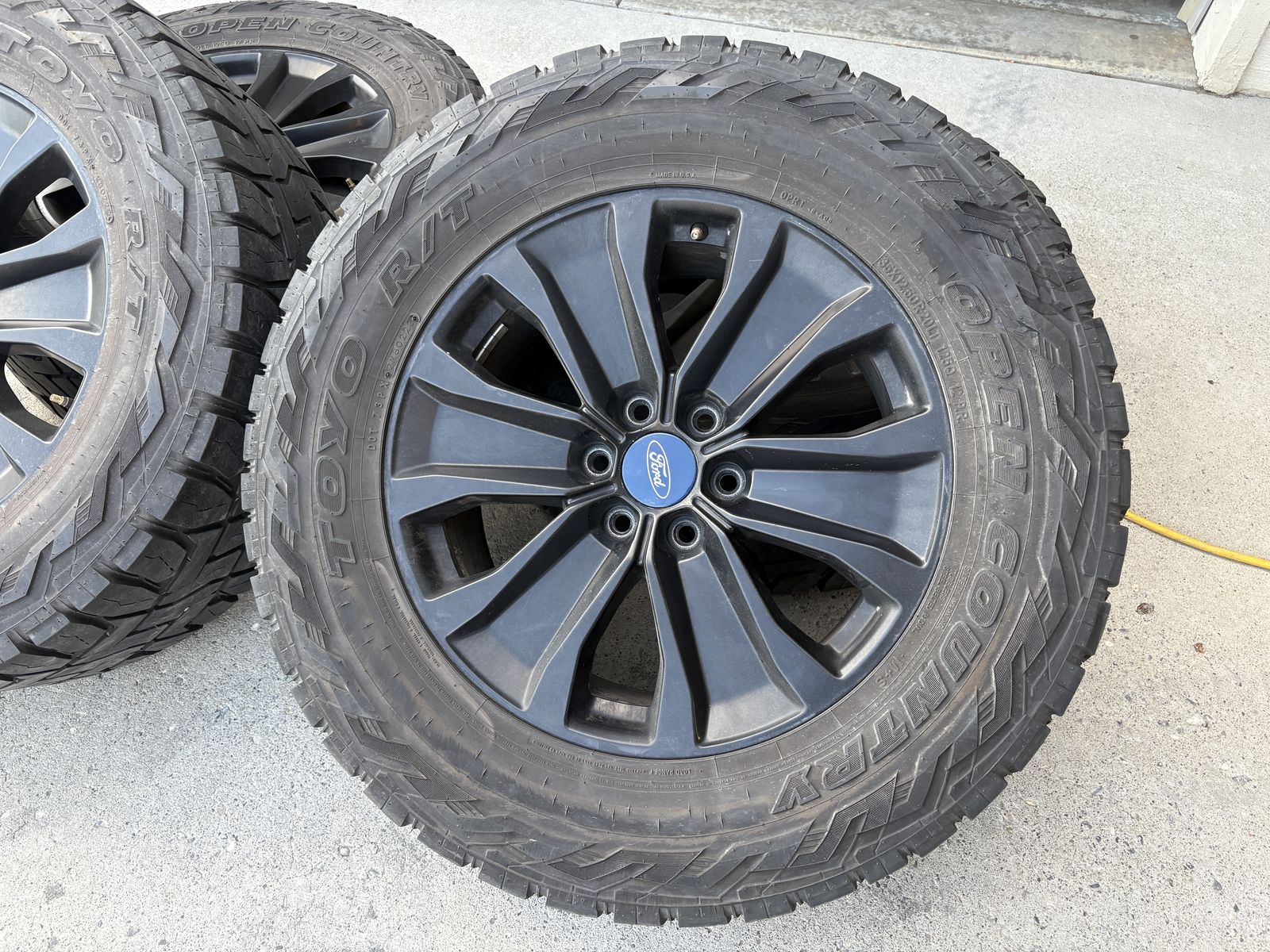 Venmo35x12.50x20 Toyo R/T tires (12 ply) with 50% tread Factory black F150 wheels (6x135 lug pattern) In great shape, tires are worn evenly. Tires dated 2023. Message if interested, thanks