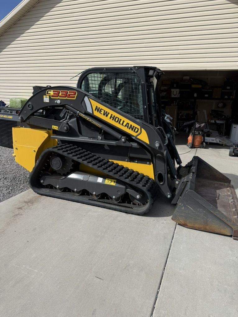 2023 New Holland skid steer C332 only 168hrs Enclosed cab, w/heat and AC Heated seat Wide track Super boom High and standard flow auxiliary hydraulics 77in bucket Hydraulic quick attach All new filters Comes with forks Excellent condition!