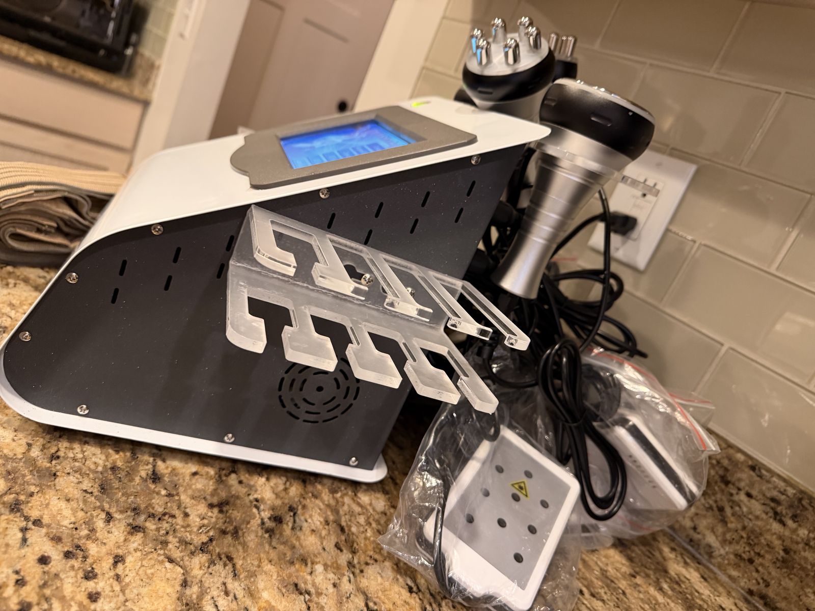 Check Mark Ultrasonic Cavitation for Fat Reduction Check Mark Radio Frequency (RF) for Skin Tightening Check Mark Vacuum RF for Lymphatic Drainage Check Mark Lipo Laser Pads for Targeted Fat Reduction Check Mark Body RF Handle for Large Areas Check Mark Facial RF Handle for Wrinkles and Fine Lines Check Mark Perfect For Both Home & Spa Use Check Mark Professional Level Results