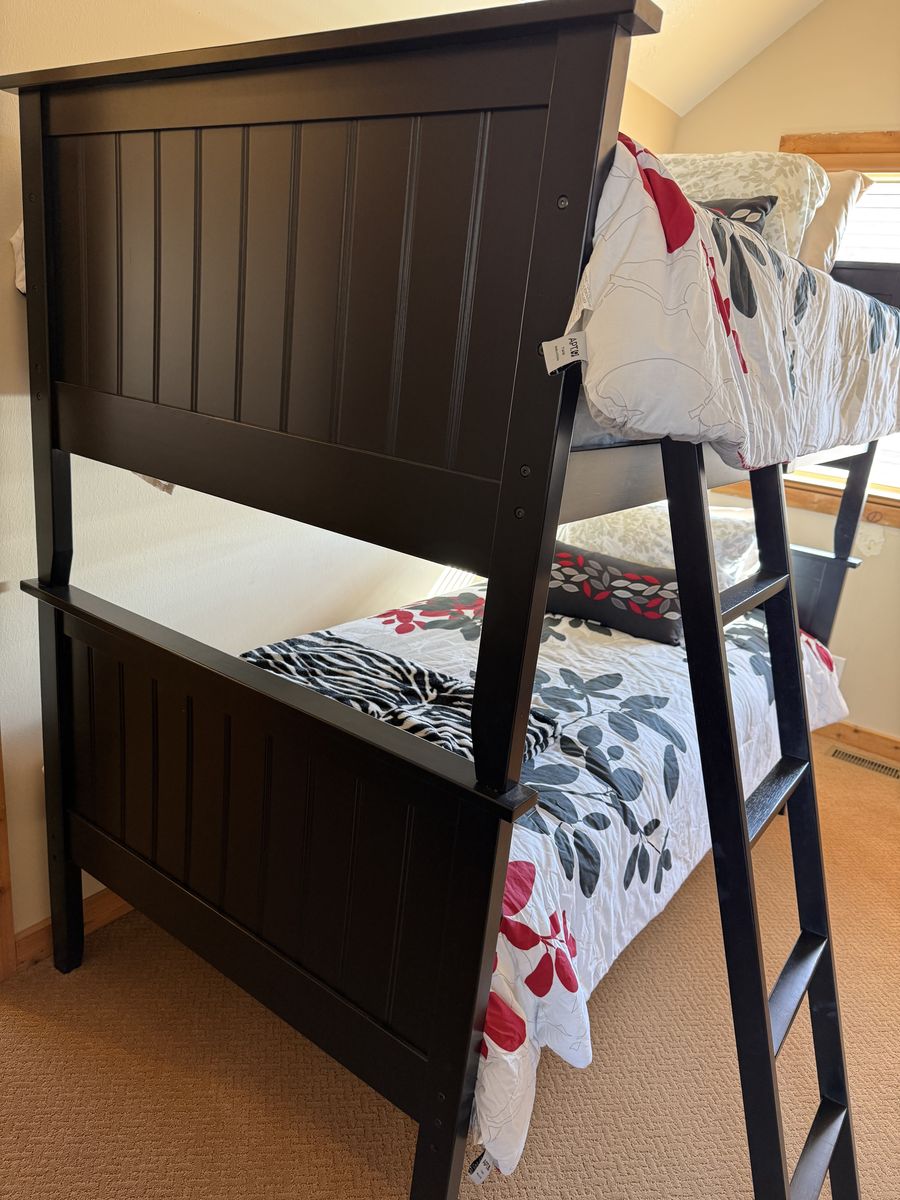 ApplePayAshley single bunk beds are like new. Included are two mattresses and complete bedding ensemble (Comforter, coverlet, sheets, pillows for each bed. Ladder included as well. 81" L x 44" width x 68.5" height Set is in Price, UT
