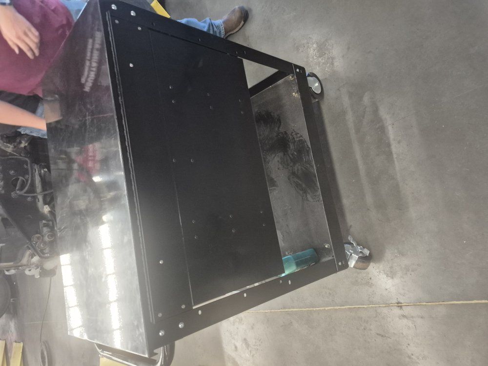 tools not included. I got offered a great deal on a bigger box and dont need this one anymore. ive had it less than a year. Everything's perfect on it. locks all work. I have a key and a spare key.