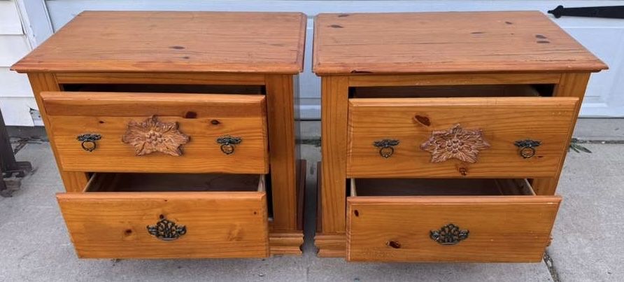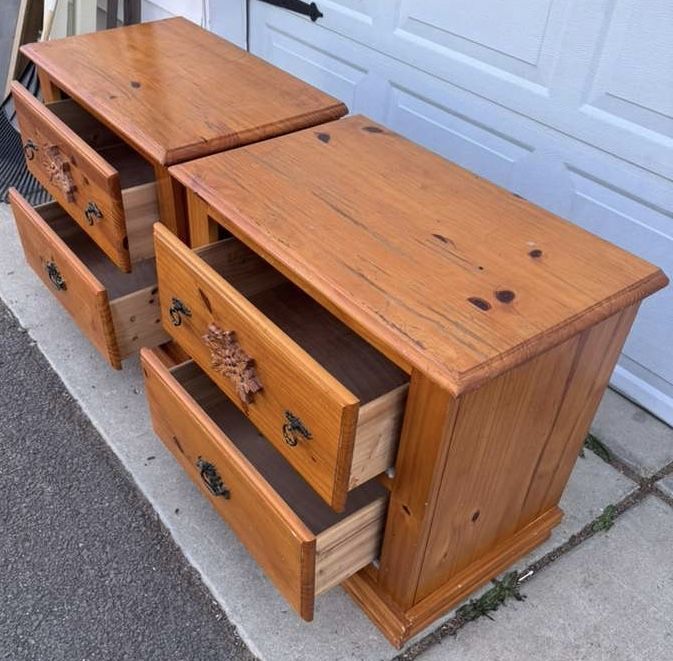VenmoWood nightstands! They have wear but their wood and drawers are good. Willing to deliver them for $50.