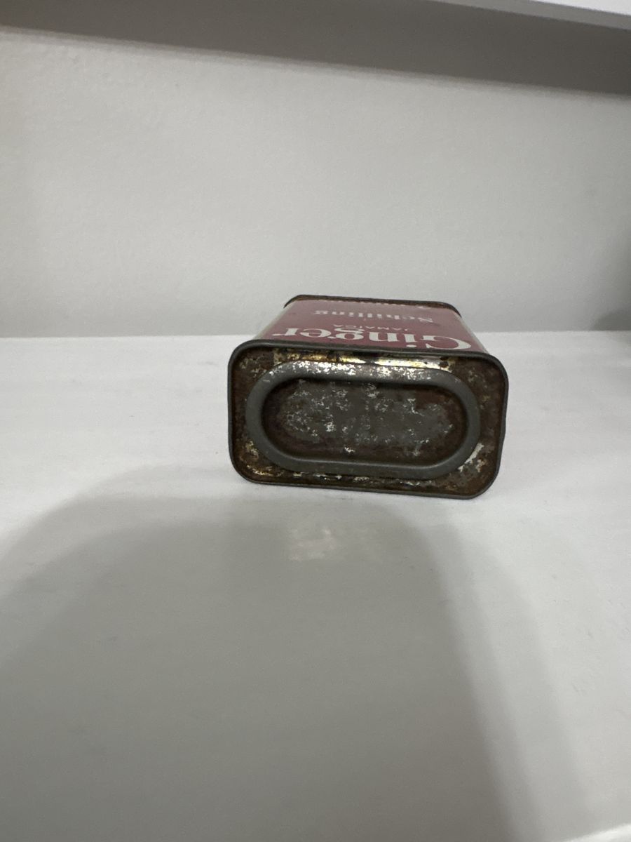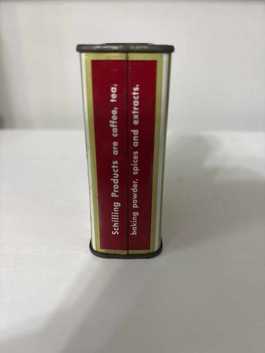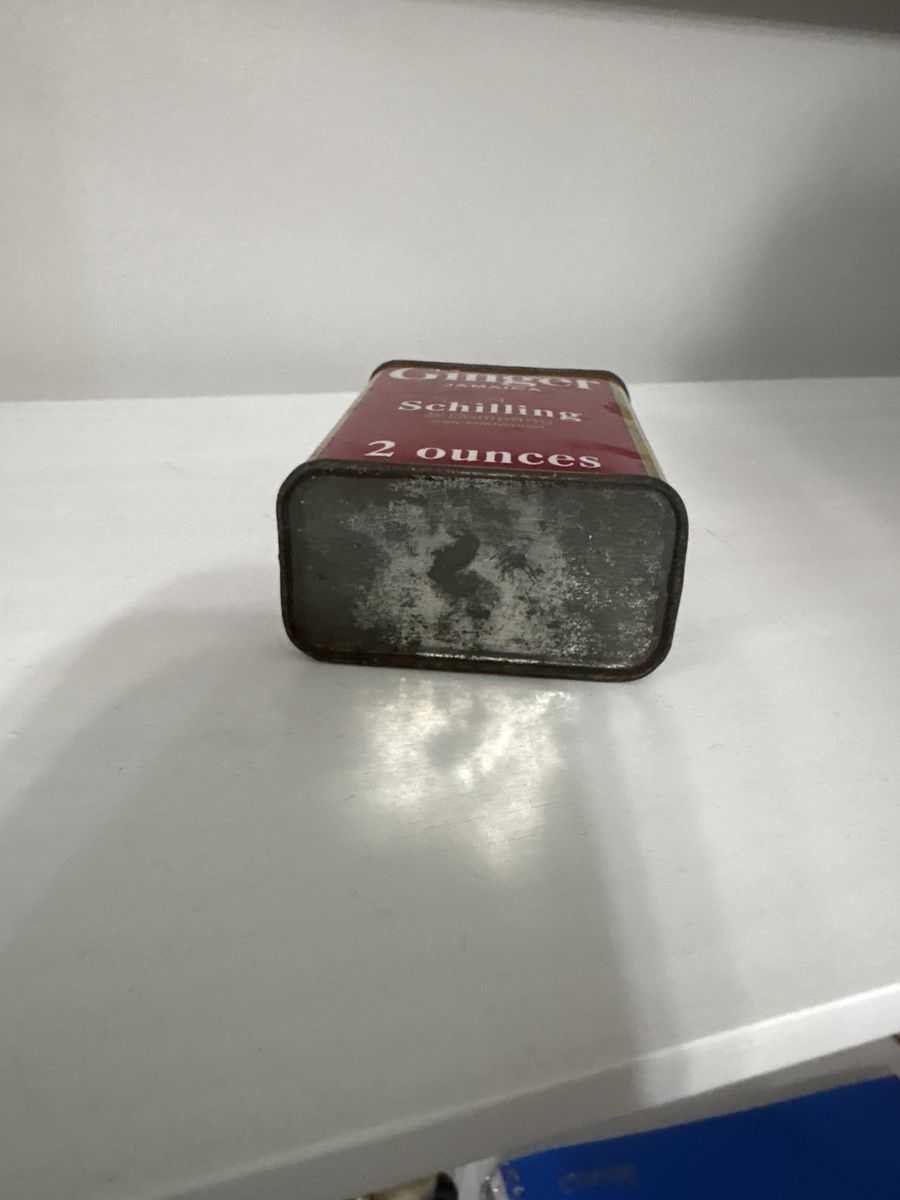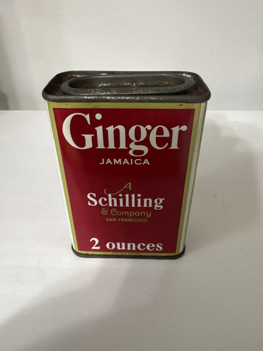 This is a 1910-1930’s Schilling’s Ginger Jamaica spice tin. The Jamaica under the Ginger means that’s where the Ginger came from. Schillings is a San Fransisco based spice company and this tin is in the era before McCormicks bought them out.