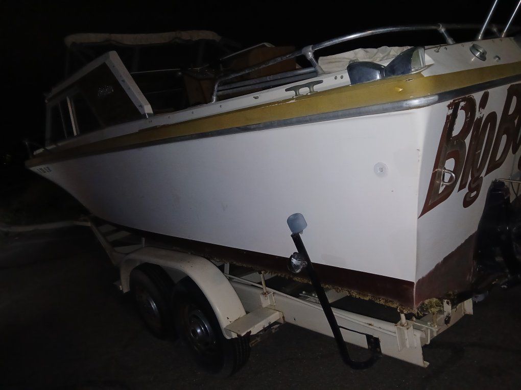 PayPalHello i have a late 70's boat which has a msleeping coasters and a bathroom, stove has good canopy all lights are compleat and not broken has spot light,big anchor, older wake board, knee boards, water skies, it needs some love but won't take much to make this floating rv turn heads and make some amazing memories with the family! its powered by twin inboard outboard mercruisers and 2 straight six chevy engines and the crank over with a jump so after the carbs are cleaned and put.fresh gas this boat will fire up with no hesitation, trailer is dual axle and tires hold air well, I dont have a title but it can be replaced fairly easy, I can provide a bill of sale and if you put gas in my truck I'll hual it almost anywhere if is reasonable and not unfair with replacing gas . im asking 400 dollars as is but all offers will be considered as well thanks for your interest i look forward to pulling it to your property and giving it a good home. I need this gone yesterday! asking 400 dollars as is please make offer before it gets towed on my street