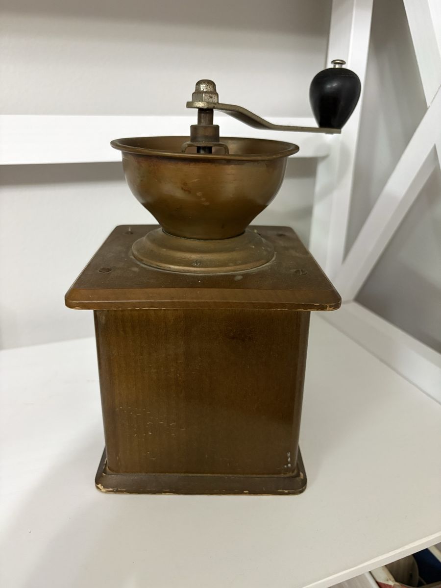 This is a vintage coffee grinder. It probably dates back to the 1950-1970’s. I first remember it 44 years ago when I was 5. You’d have to get an expert to tell you a more approximate date. I used it up until about 2 years ago and it still works well.