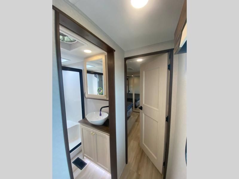 With any Cedar Creek Experience fifth wheel by Forest River, you will bet met with luxury features both inside and out! The True Gelcoat exterior is the best of the best in exteriors and the 3M bonded sidewalls will hold up over years of use. There is also a new 101'' wide-body frame, a Road Warrior suspension, plus a TST tire pressure monitoring system to make towing that much easier. You will find a hidden front storage compartment, along with a 4' x 6' ABS, ribbed, removable underbelly panels, and 6-point hydraulic leveling system, plus many more exterior conveniences. The interior will have you feeling like you haven't left home with vinyl floor coverings, power theater seating with USB ports, a cozy fireplace, v****inyl floor covering and the list of comforts goes on! Each model is also pre-wired for satellite to the roof, and you're sure to never go bored with a Smart TV in the bedroom!