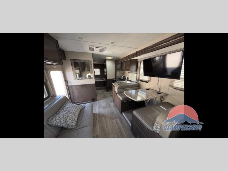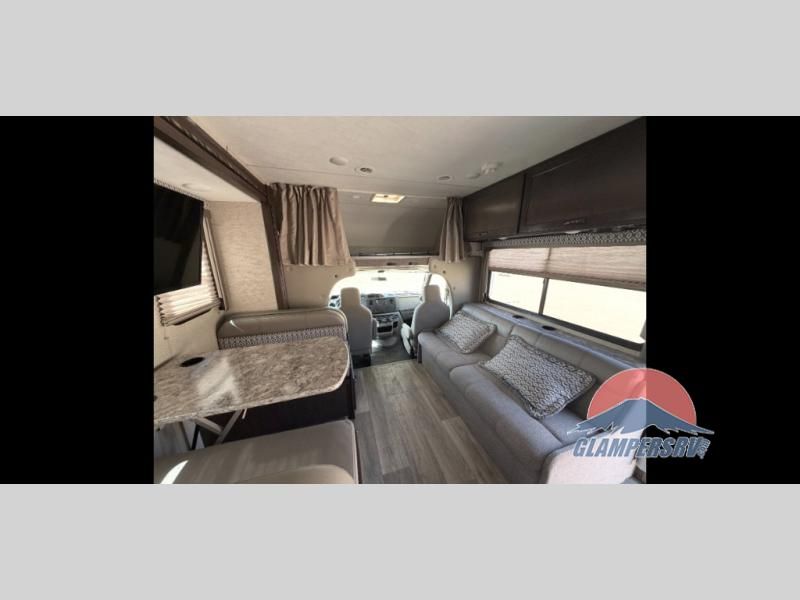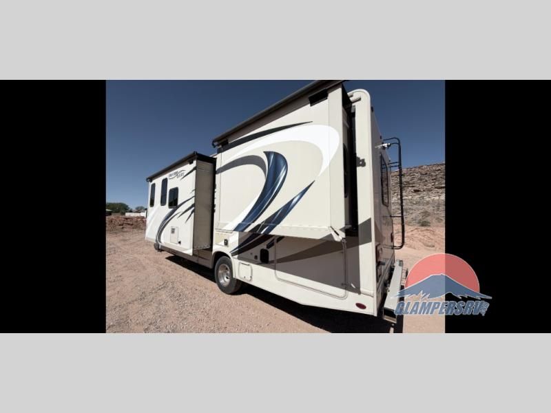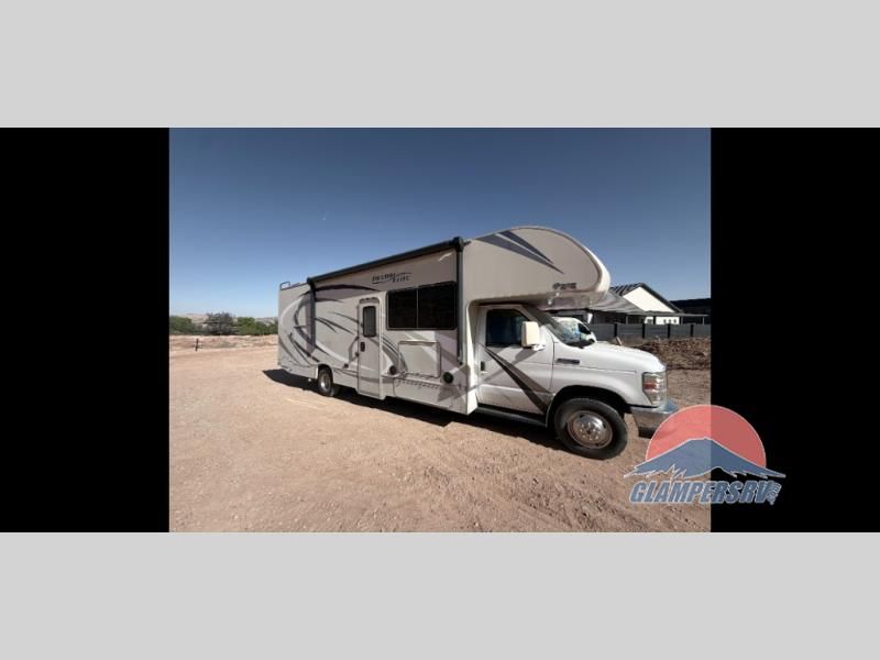When you are ready to vacation in comfort and style, choose this double slide out 29FE class C Freedom Elite motor home by Thor Motor Coach. Throughout this model you will find sleeping space for six, an exterior kitchen, and an exterior TV, plus so much more!