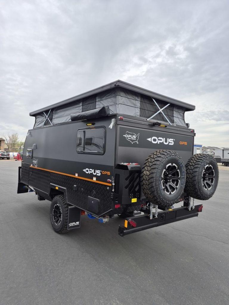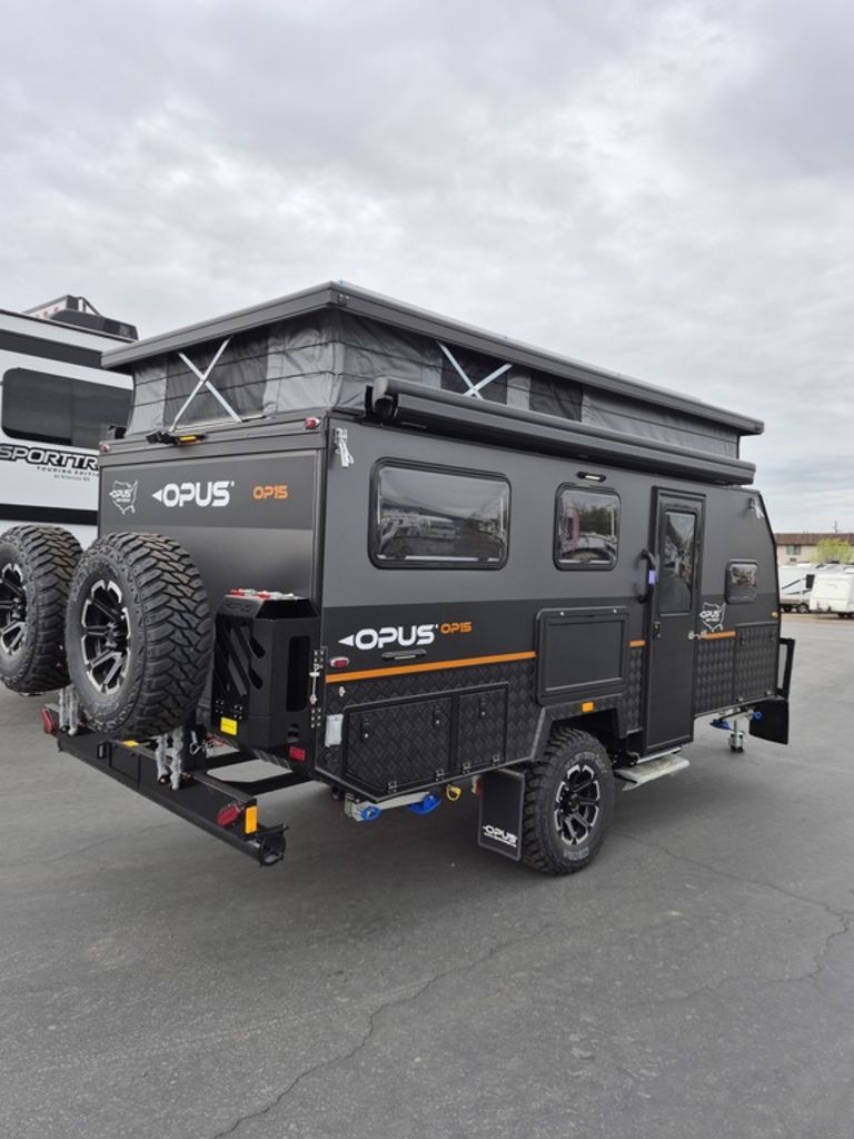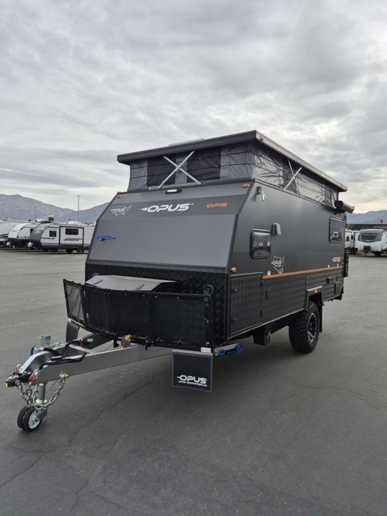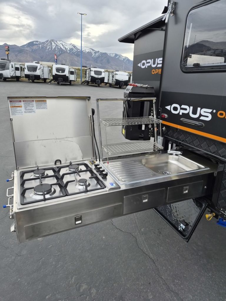 The OP15 stainless steel kitchen slides out to a fully-functioning off-grid outdoor