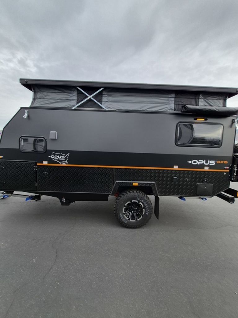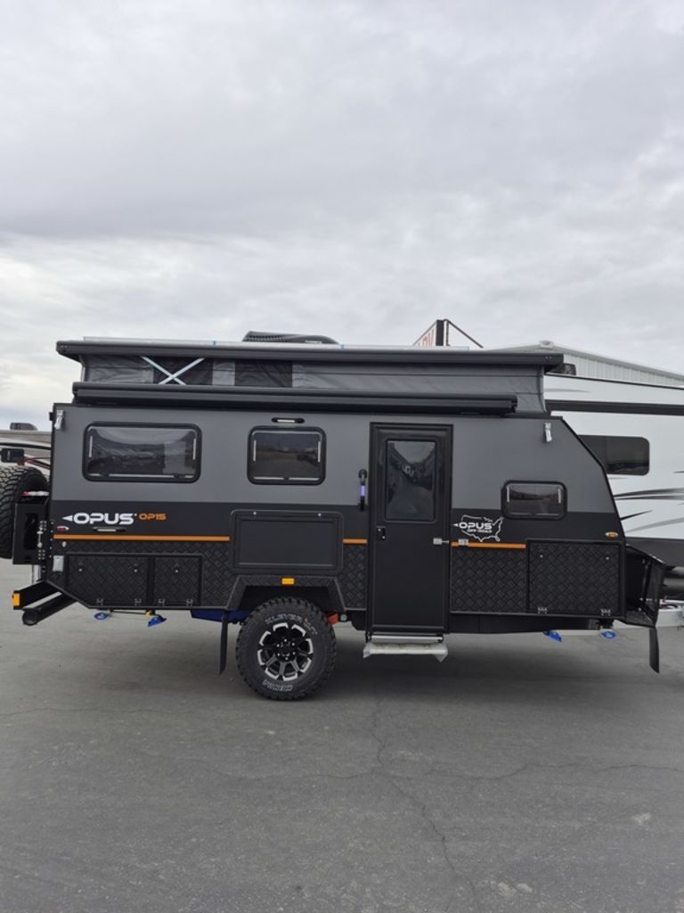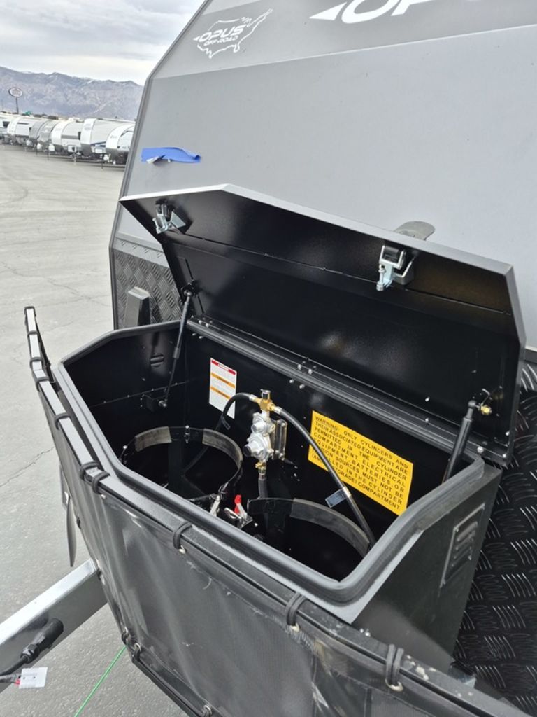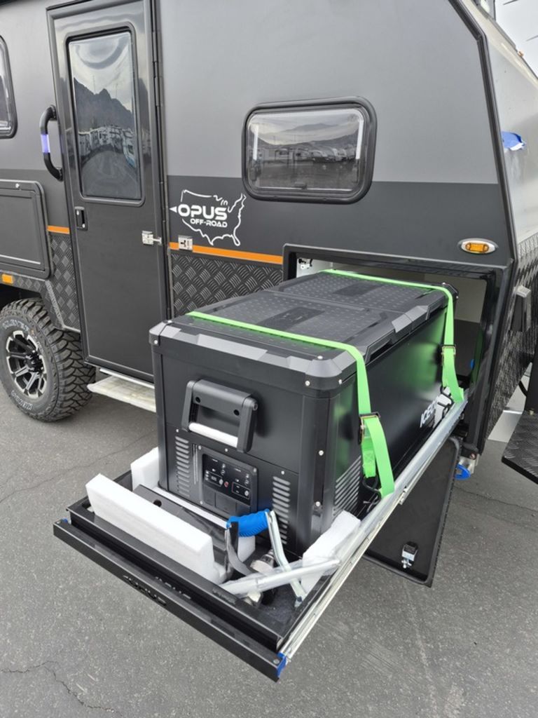 The OP15 stainless steel kitchen slides out to a fully-functioning off-grid outdoor