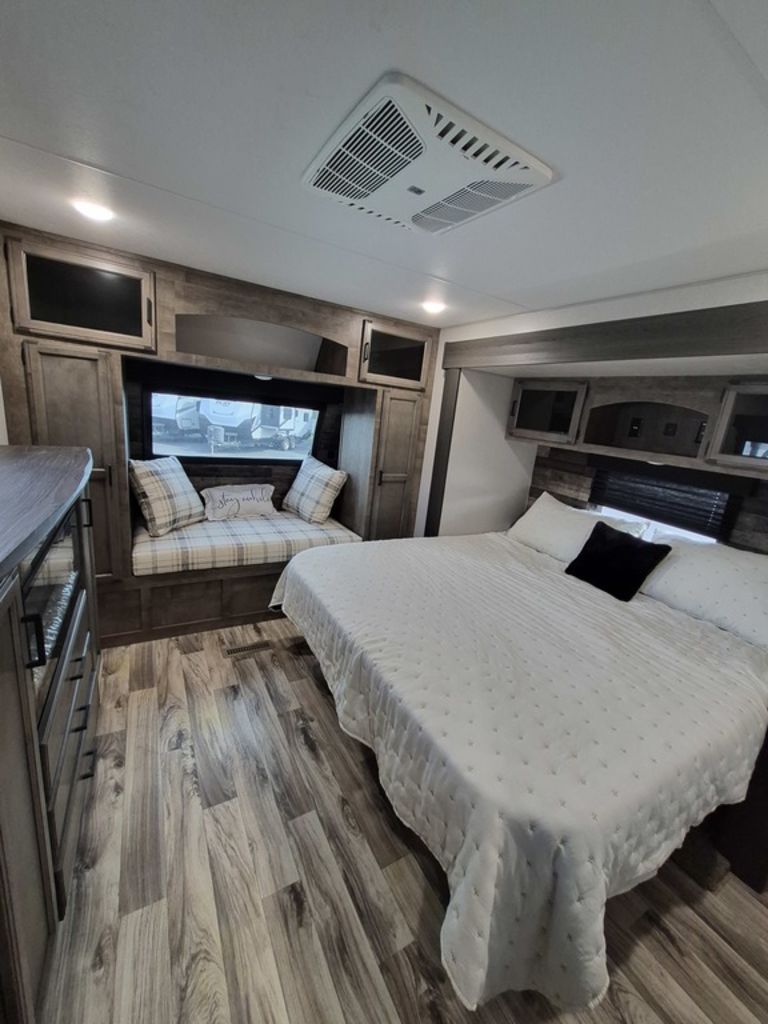 A sleek new exterior look includes pearl-infused fiberglass sidewalls with automotive-quality graphics. The Weather-Shield Package also debuts this year, with insulation components that let you extend the camping season. With so many versatile layouts, you’re sure to find the perfect floorplan.
