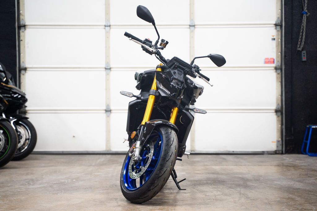 2026 Yamaha MT-09 SP MASTER OF DARKNESS Featuring exclusive special edition coloring, premium KYB® and Öhlins® suspension, and top-shelf Brembo® brakes, experience the class-dominating middleweight master born from the Darkness. Features may include: Powerful 890cc Three-Cylinder Engine Yamaha's renowned 890cc liquid-cooled CP3 engine is light, powerful and provides a thrilling wave of torque from low RPMs. A combination of carefully tuned induction sound and distinctive crossplane triple exhaust note provides a resonance which only heightens the feeling of acceleration. Throttle valves are governed by the Yamaha Chip Controlled Throttle (YCC-T) system enabling finer actuation and precise control. Advanced Six-Axis IMU The MT-09 SP features an advanced six-axis Inertial Measurement Unit (IMU) that matches the base performance of proven IMU in the YZF-R1 Superbike. Data collected from the IMU and wheel speed sensors enable a high-tech suite of rider aids including a four-mode Traction Control System (TCS), Slide Control System (SCS), front wheel Lift Control System (LIF) and a two-mode Brake Control System. Each of these systems can be turned off and Traction Control, Slide Control and Lift Control can have their levels of intervention adjusted to preference. Lightweight CF Die-Cast Aluminum Frame The MT-09 SP features an advanced, lightweight aluminum frame refined to showcase the MT's signature agility. To ensure both straight-line stability and handling performance, the balance of longitudinal, lateral and torsional rigidity are all carefully considered and finely tuned. The frame is manufactured using Yamaha's groundbreaking controlled fill (CF) die casting technology which contributes to its light weight. High-Spec SP Suspension Premium SP-exclusive suspension brings Supersport-level handling and precision to the Hyper Naked class. The 41mm DLC coated KYB® forks and O–hlins® rear shock feature a higher spring rate offering outstanding stability during more spirited riding. Set-up can be fine tuned to suit a variety of different riding situations with the forks fully adjustable for preload, rebound, high- and low-speed compression damping, while the fully adjustable Öhlins® shock is equipped with a remote preload adjuster to enable quick and easy changes. Brembo® Stylema Calipers & Radial Master Cylinder The MT-09 SP boasts premium-spec Brembo® Stylema monoblock brake calipers paired with a Brembo® radial master cylinder and large 298mm dual front discs for the ultimate in stopping power and finger-tip control. Five-Inch TFT Display with Smartphone Connectivity Riders can link their smartphone to the rich, full-color TFT display via Yamaha's free Y-Connect app to receive message notifications, calls and listen to music (through use of an aftermarket Bluetooth® headset, not provided). Additionally, full turn-by-turn navigation is available through the Garmin® StreetCross app to make each journey easier.