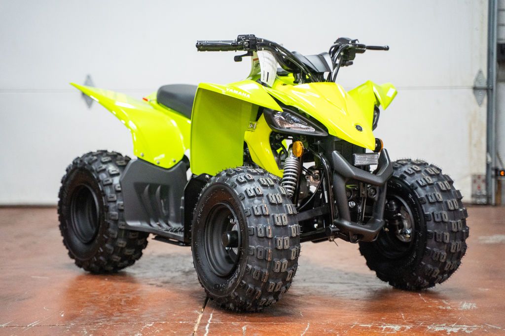 2026 Yamaha YFZ50 FIRST-TIME RIDER, LIFELONG MEMORIES Boasting electric start, automatic transmission and parental controls, this model is perfect for riders age 6 and up. Features may include: ENGINE The 49cc four-stroke SOHC engine is tuned for excellent low- to mid-range performance, perfect for beginning riders. The motor is air-cooled for simplicity, performance and long engine life, and uses ultra-reliable wet-sump lubrication. The CDI system means reliable ignition performance with a strong, efficient spark. Quick-access toolless air filter element makes servicing easy. The exhaust includes a standard spark arrestor. A two-stage rpm limiter, as well as a throttle limiter, enable matching engine performance to the rider's advancing skill level. CHASSIS/SUSPENSION A robust steel frame design and optimized wheelbase are ready for serious off-road. Single I-arm front suspension is tuned for light, easy steering and comfortable ride quality. Compact single-shock rear suspension for additional control and comfort. Swingarm is set at an optimized angle for rear shock performance. Duro® low-profile AT16 x 6.5-7 front and AT16 x 7-7 rear tires give the YFZ50 aggressive looks and sporty handling. Lightweight wheels further enhance the sporty look and handling character. ADDITIONAL FEATURES Aggressive styling is unmistakably inspired by the race-ready Yamaha YFZ450R, so little ones can ride like their heroes. A sealed, maintenance-free battery provides worry-free operation. A large 1.5-gallon fuel tank means more time on the trail.